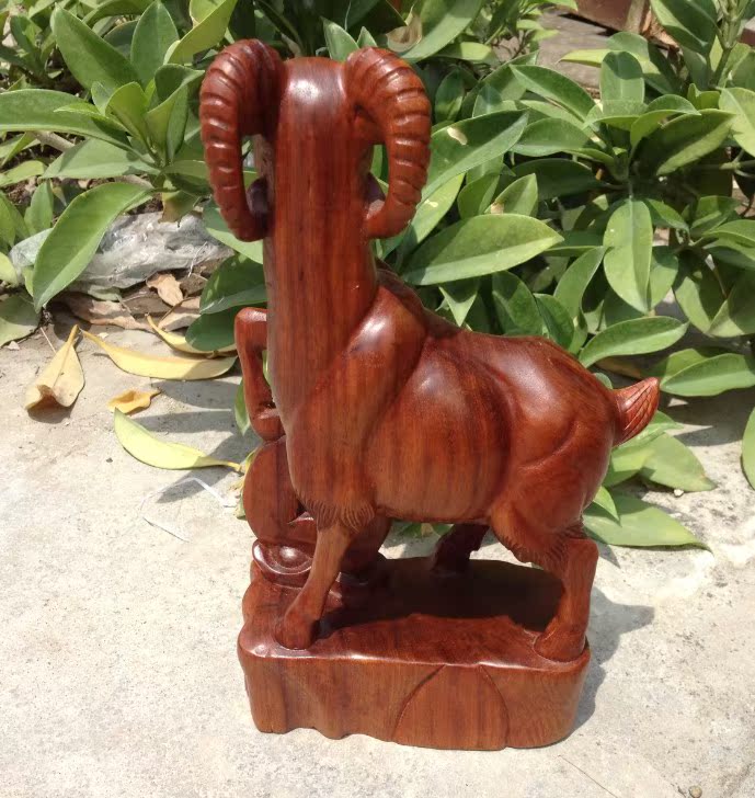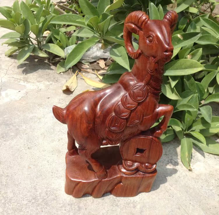 單只紅花梨木紅木工藝品實木雕刻家居擺件生肖招財羊木質三羊開泰動物