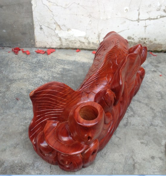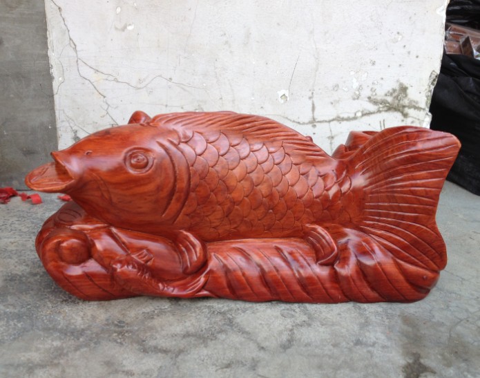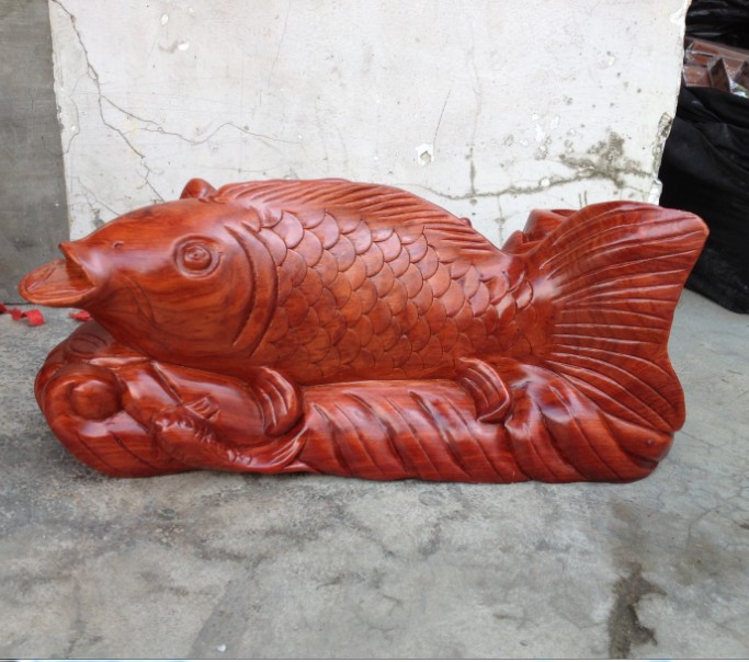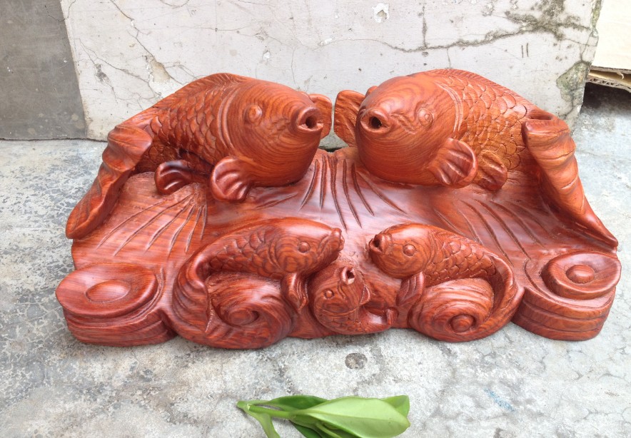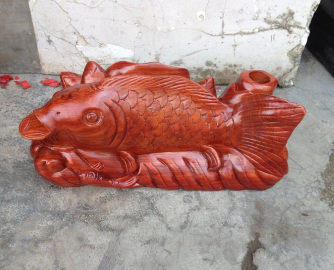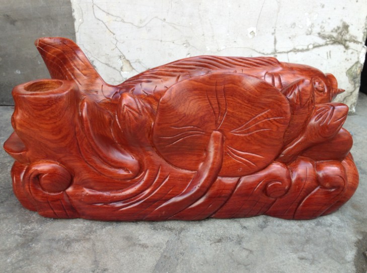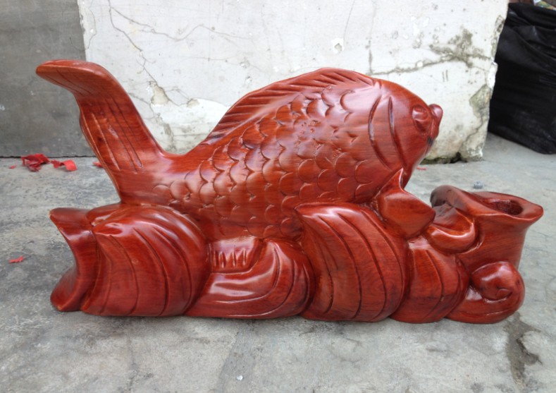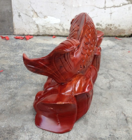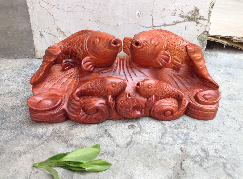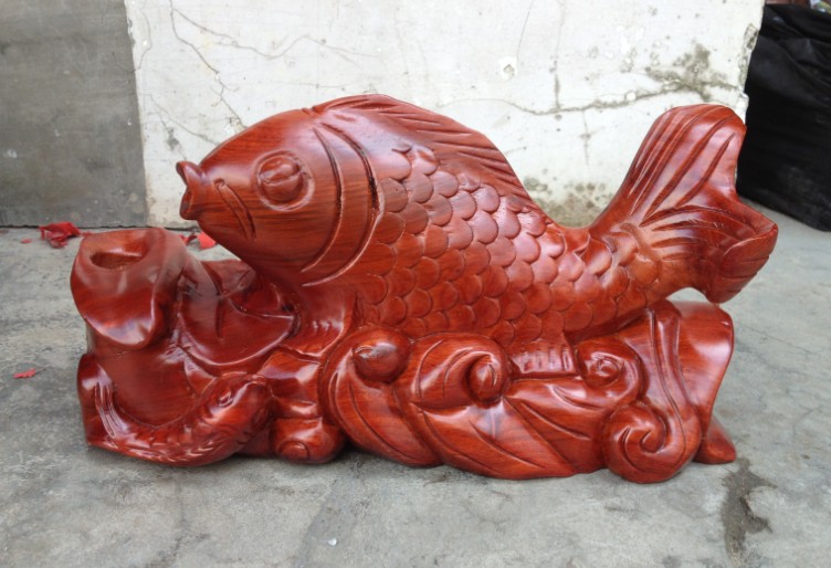 花梨木雕連年有余 木雕魚整木雕