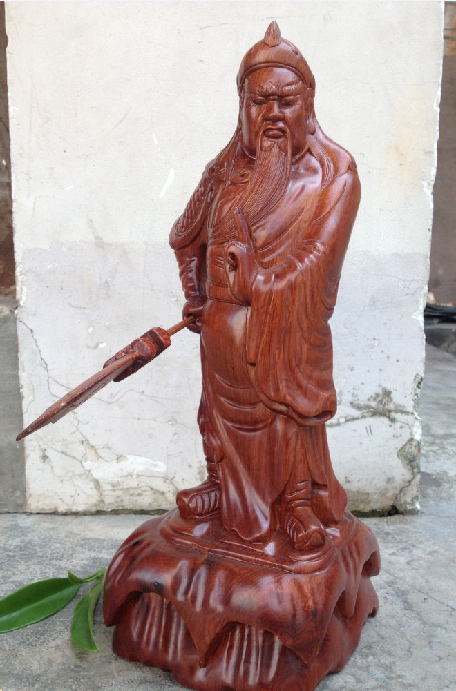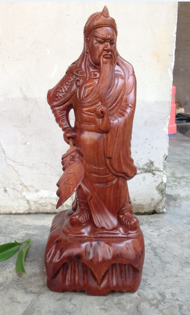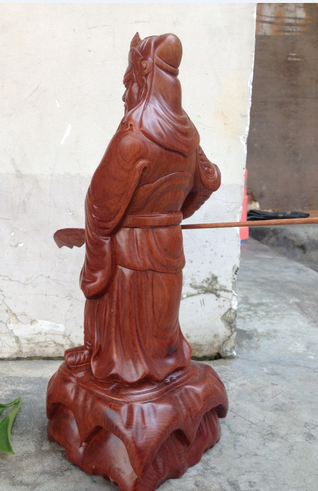 高40厘米木雕關公擺件 花梨木雕立刀關公像 紅木實木武財神關二爺工藝品