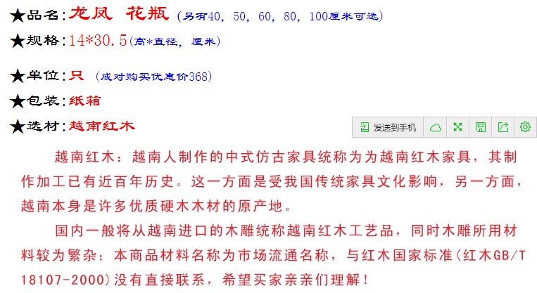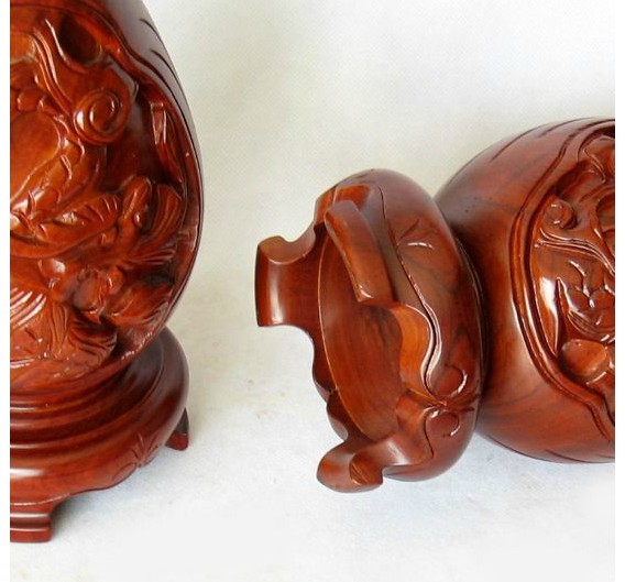 高25厘米一對越南工藝品*紅木花瓶*家居飾品*龍鳳花瓶