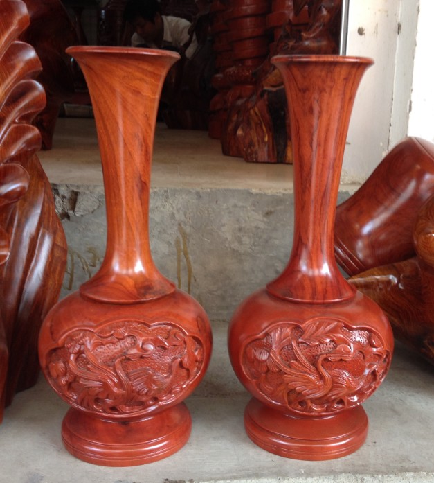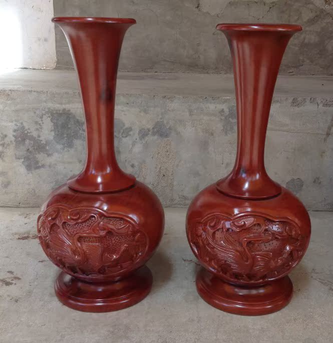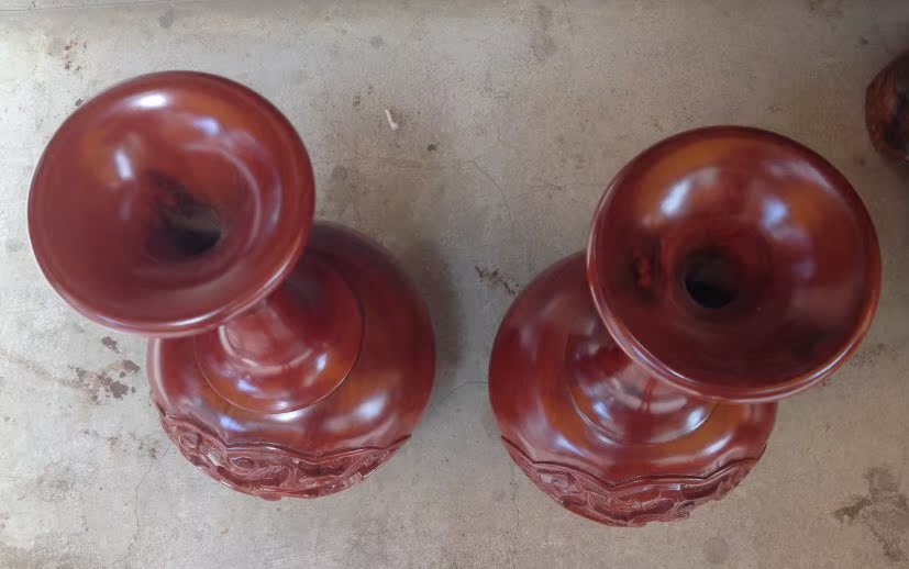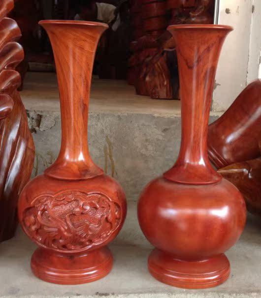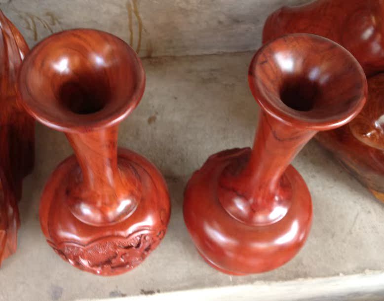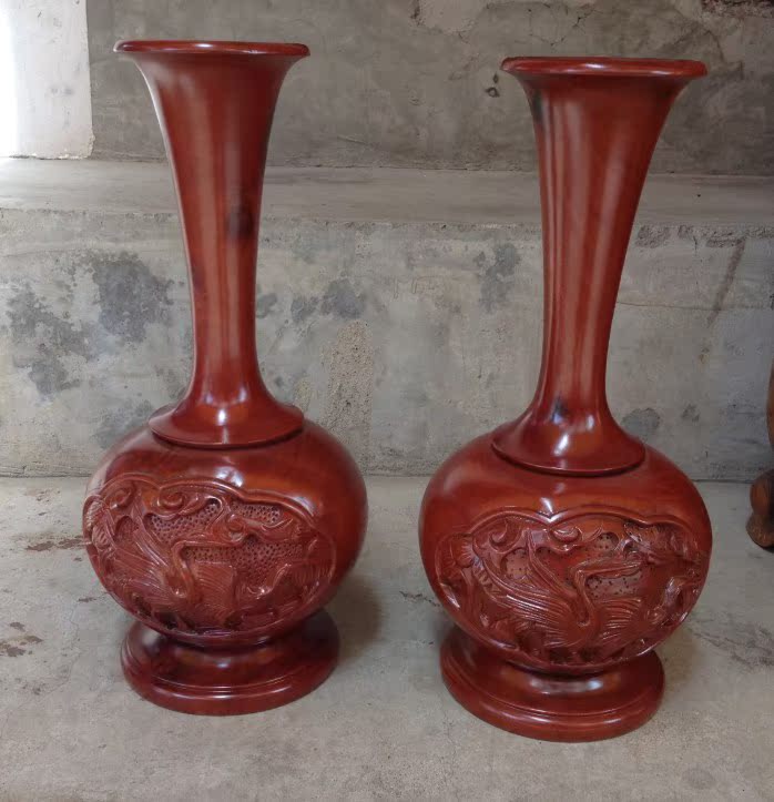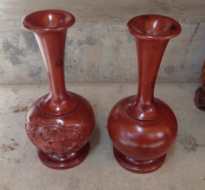 高30厘米一對花瓶 工藝品家居飾品擺件 柚木花瓶木雕櫥窗