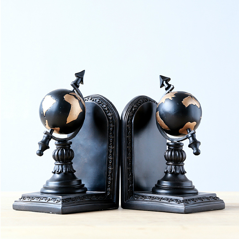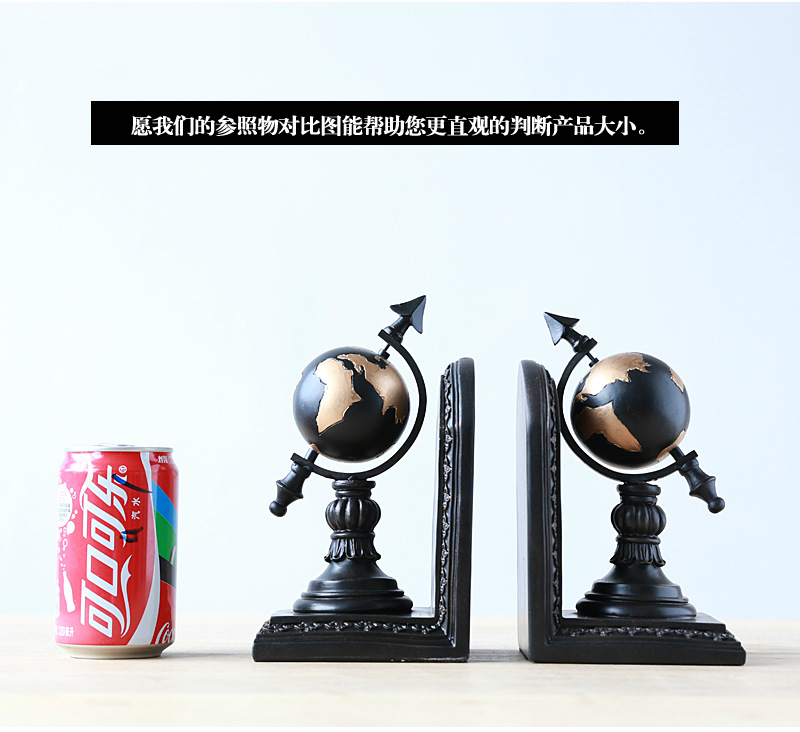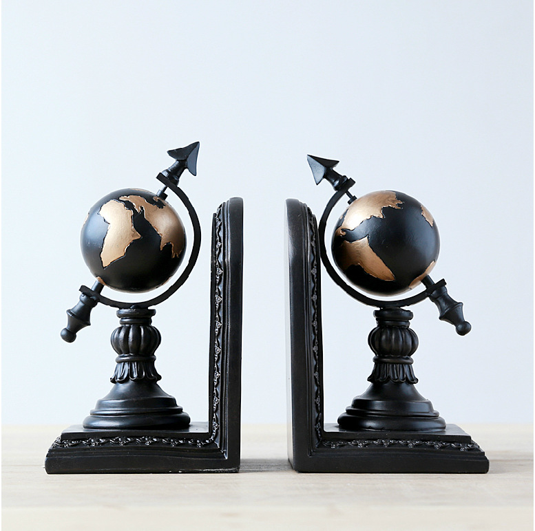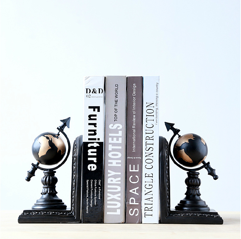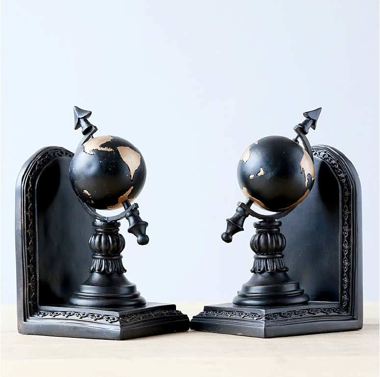 美式鄉村裝飾工藝品書立書靠 地球儀樹脂書擋 家居擺件 E21-FB58