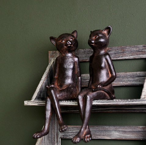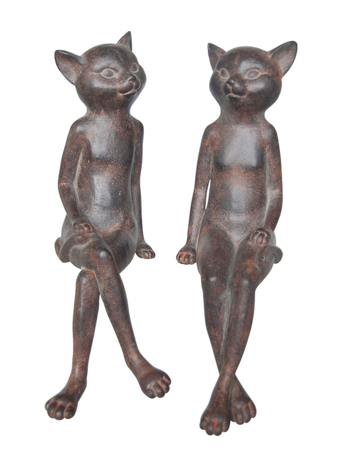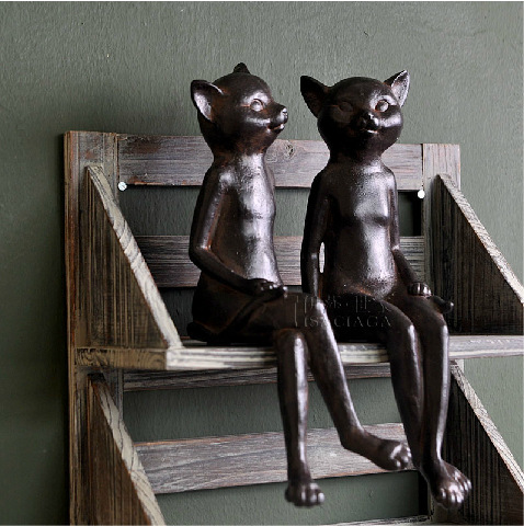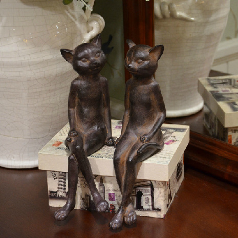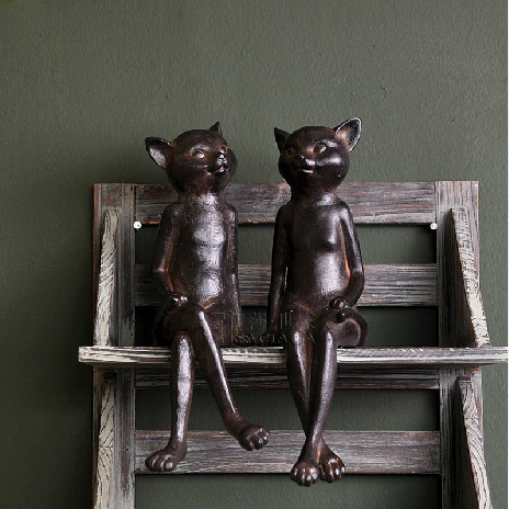 美式鄉村工藝裝飾品 動物樹脂羅維爾悠閑對貓咪擺件裝飾2729