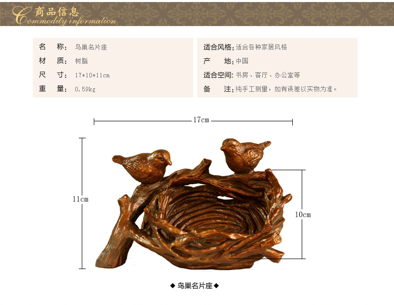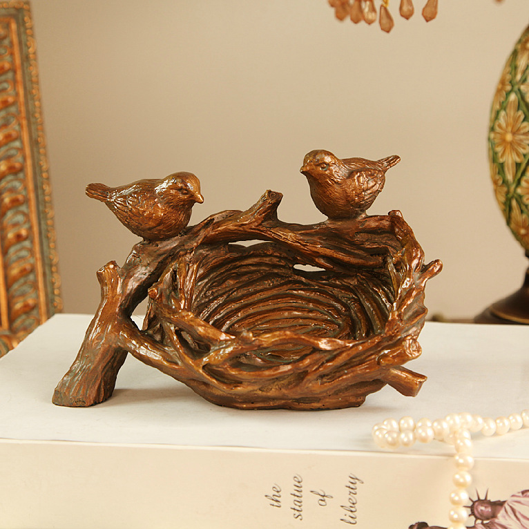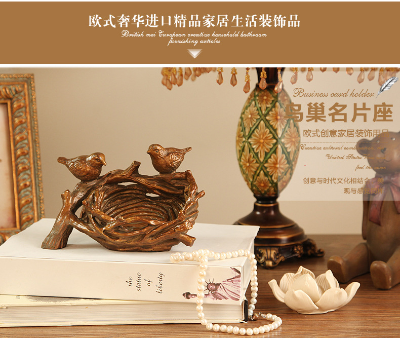 美式鄉村 創意樹脂名片盒 歐式鳥巢收納盒 復古擺件煙灰裝飾缸