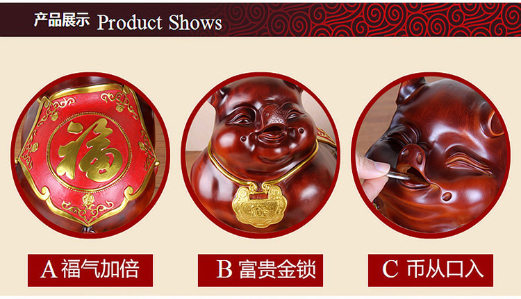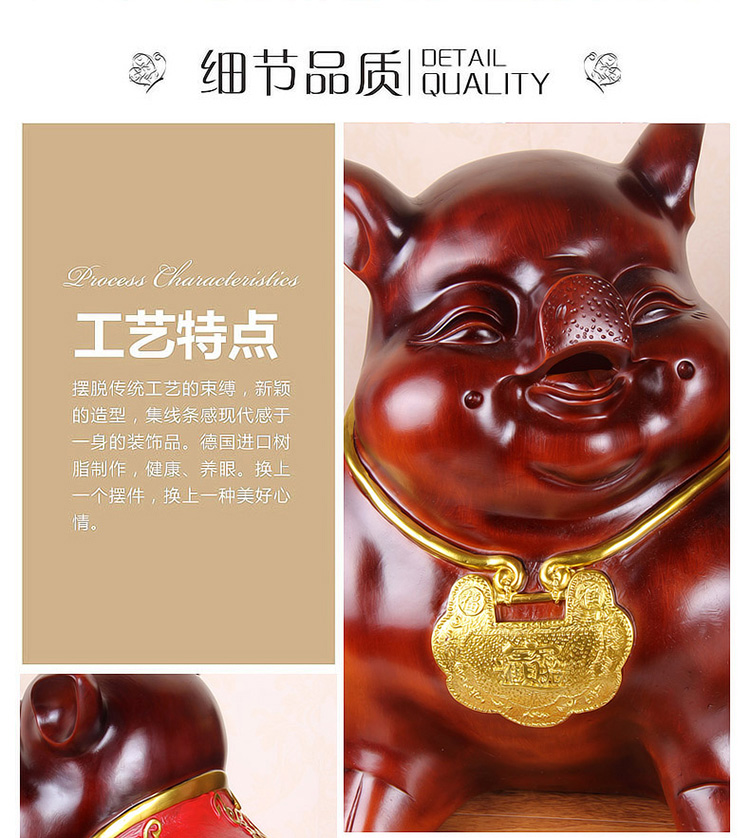 紅木色大號存錢罐超大號可愛萬福金豬樹脂存錢罐儲錢罐擺件送兒童生日禮物節慶禮品