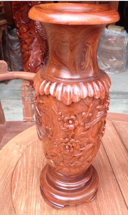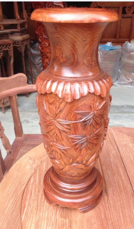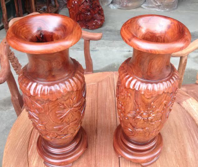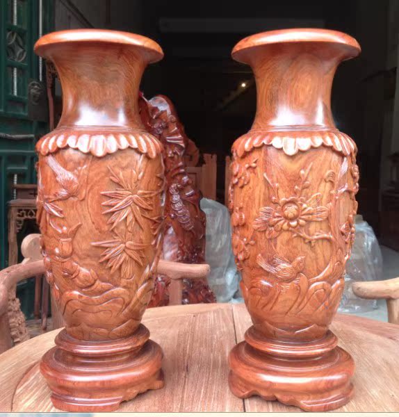花瓶一對紅木工藝品 緬甸花梨木花瓶 擺件精工雕花紅木花瓶