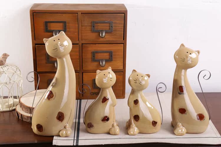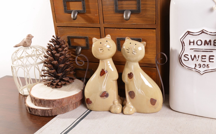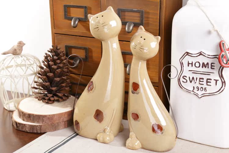 兩只大號田園家居 結婚禮物高檔陶瓷擺件 情侶貓客廳 工藝品禮品