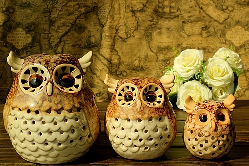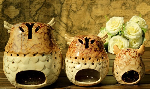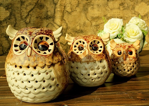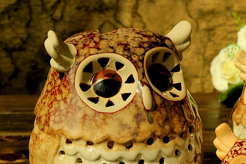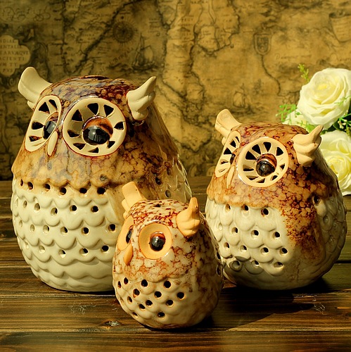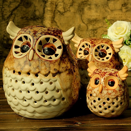 中號歐式田園窯變陶瓷貓頭鷹擺件 燭臺 家居裝飾品 3種可選 C29
