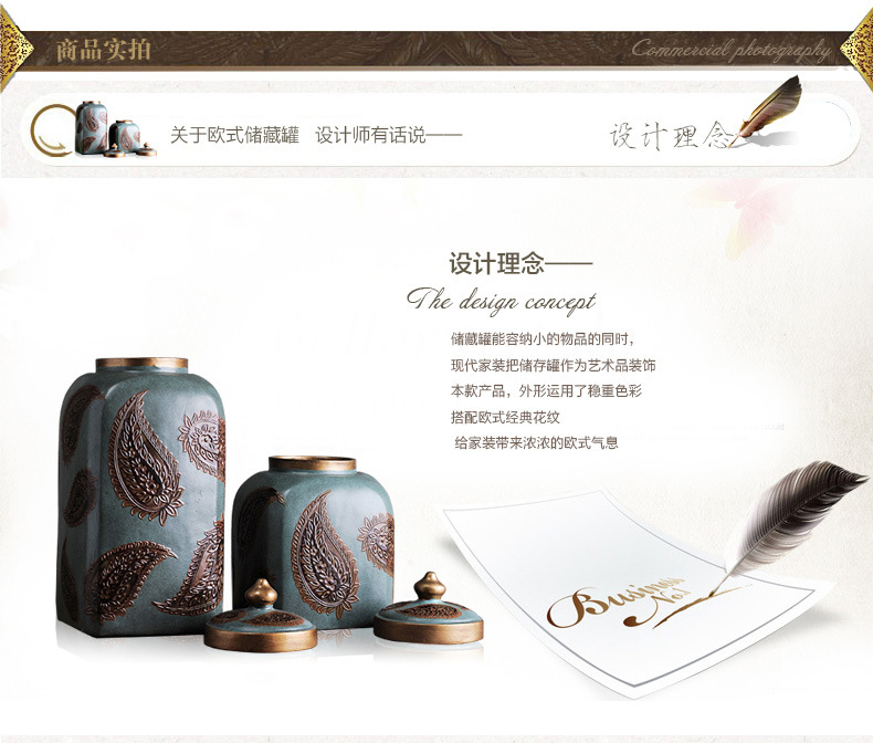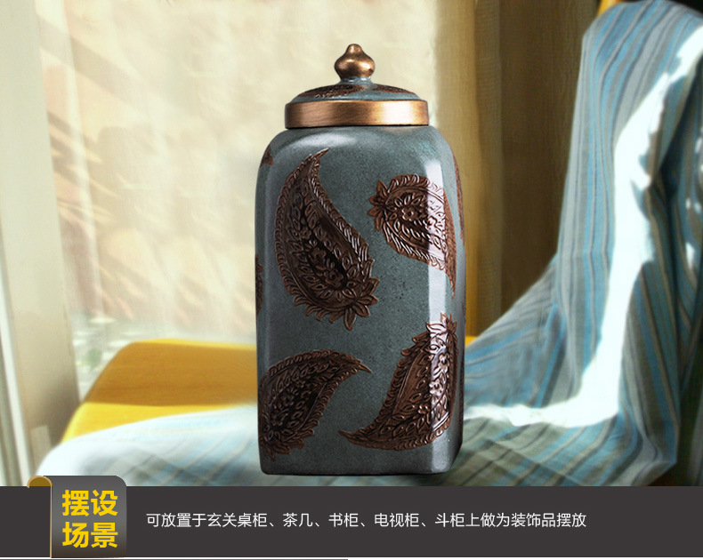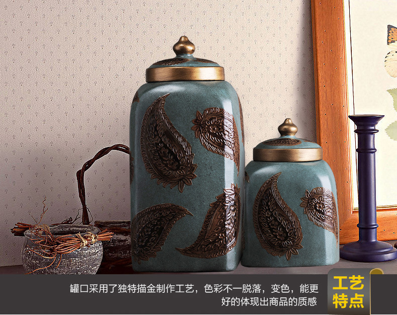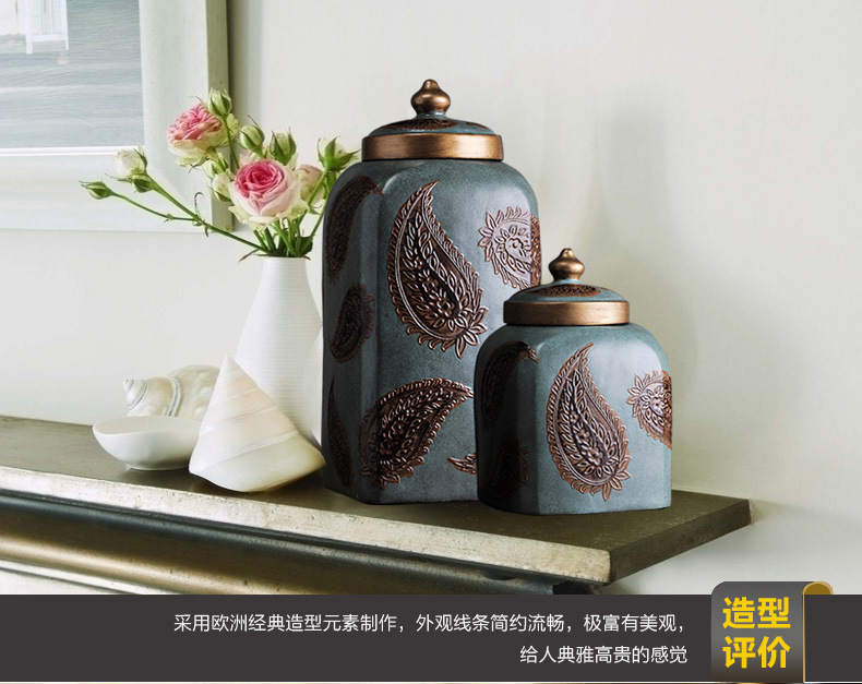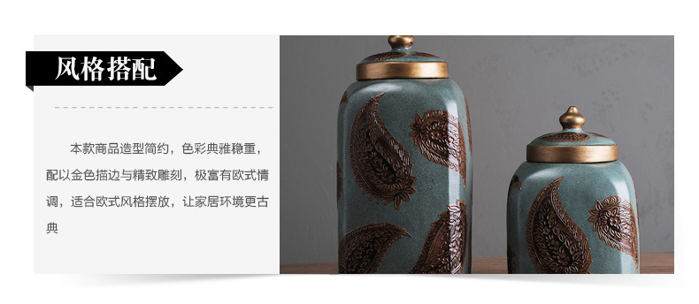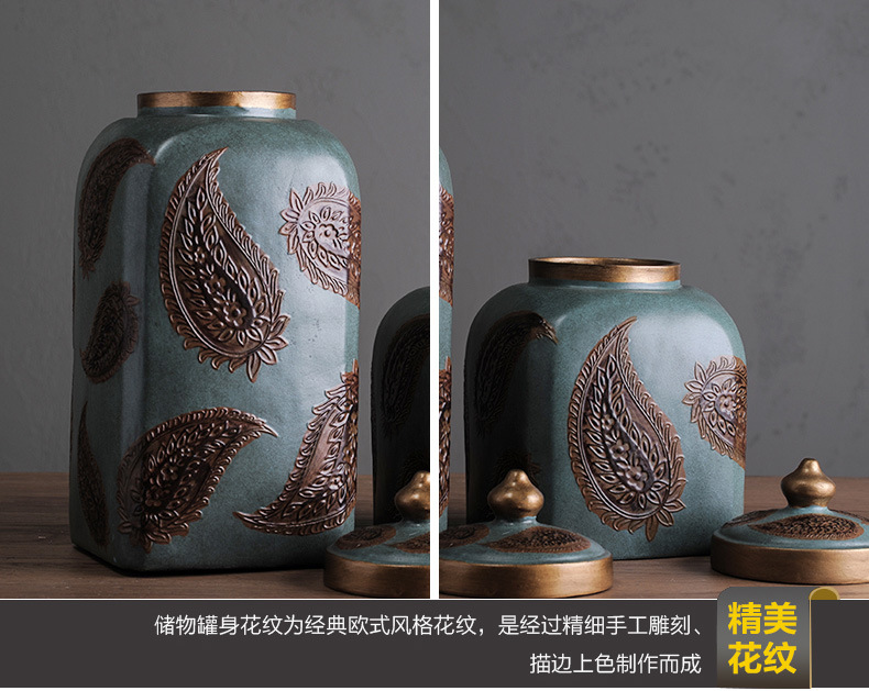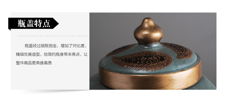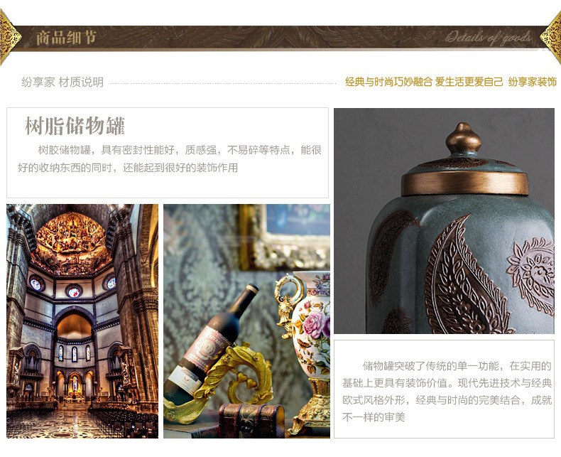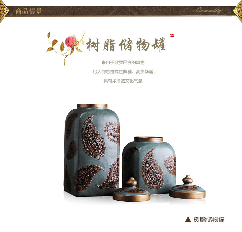 小號美式高檔家居飾品復古描金樹脂儲物罐裝飾中式客廳擺件