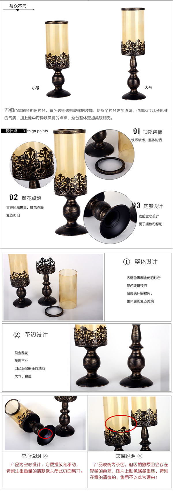 大號燭光晚餐香薰燭臺 歐式古典浪漫 鐵藝復古擺件 婚慶道具禮物