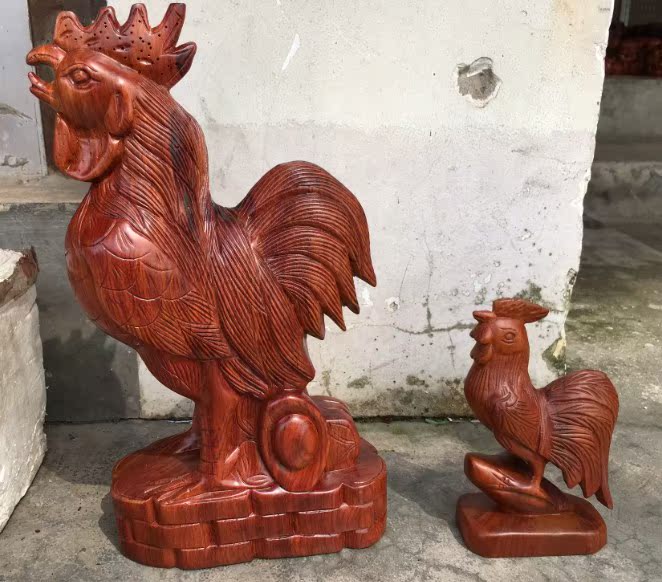 大號紅木雕刻生肖雞工藝品大公雞家居風水擺件大號30CM斬桃花鴻運當頭