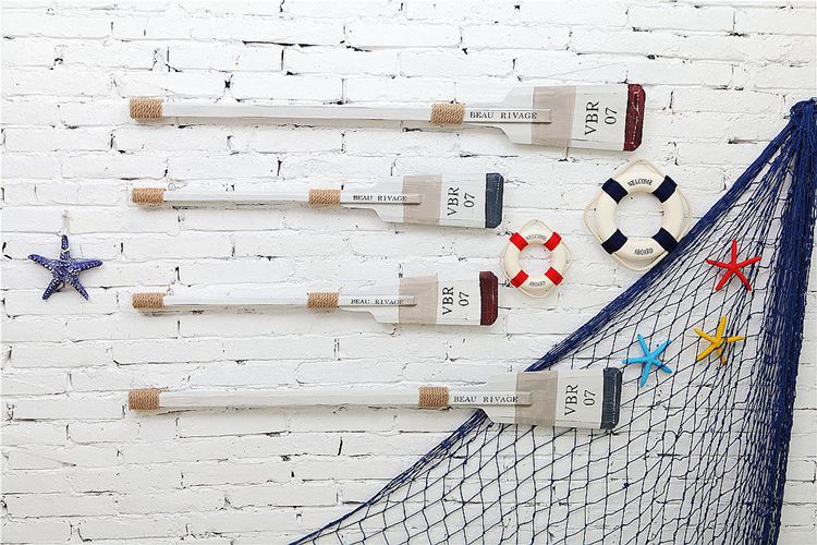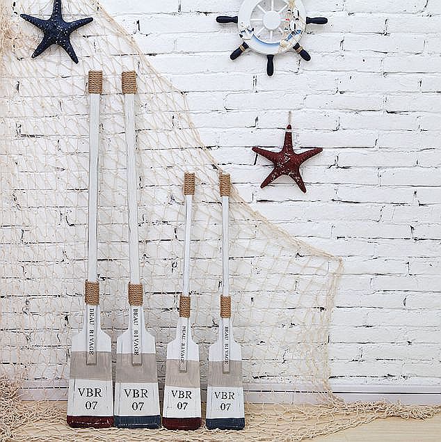大號紅色地中海風格裝飾品 實木船槳墻飾壁飾道具擺件掛飾酒吧裝飾