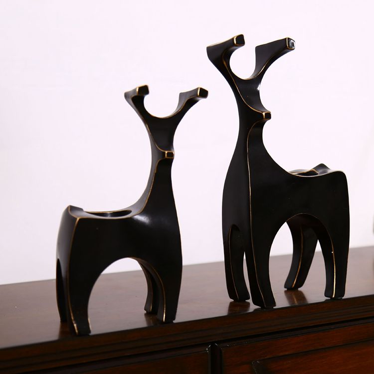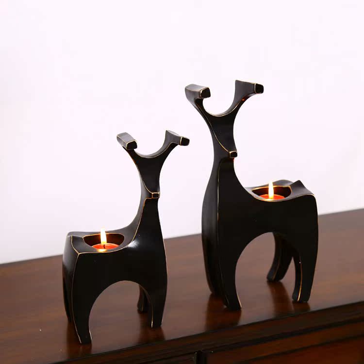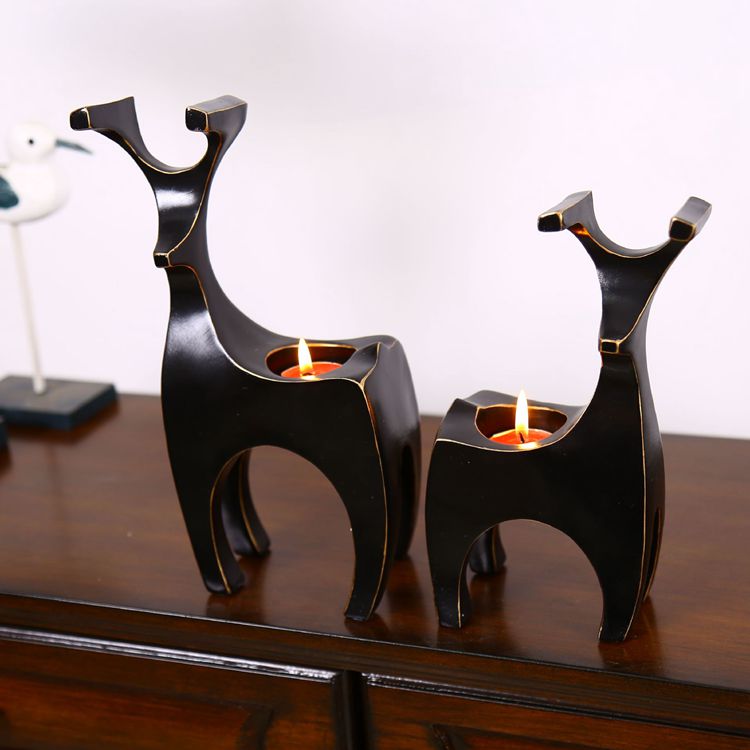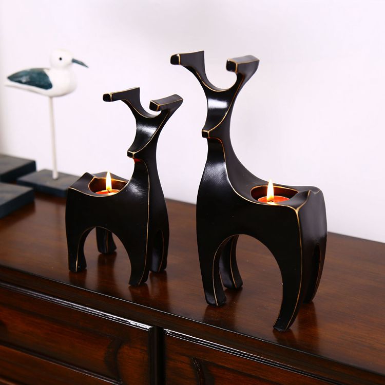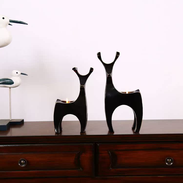 大小一套吉祥招財家居情侶鹿燭臺擺件樹脂工藝品時尚創意抽象動物裝飾品