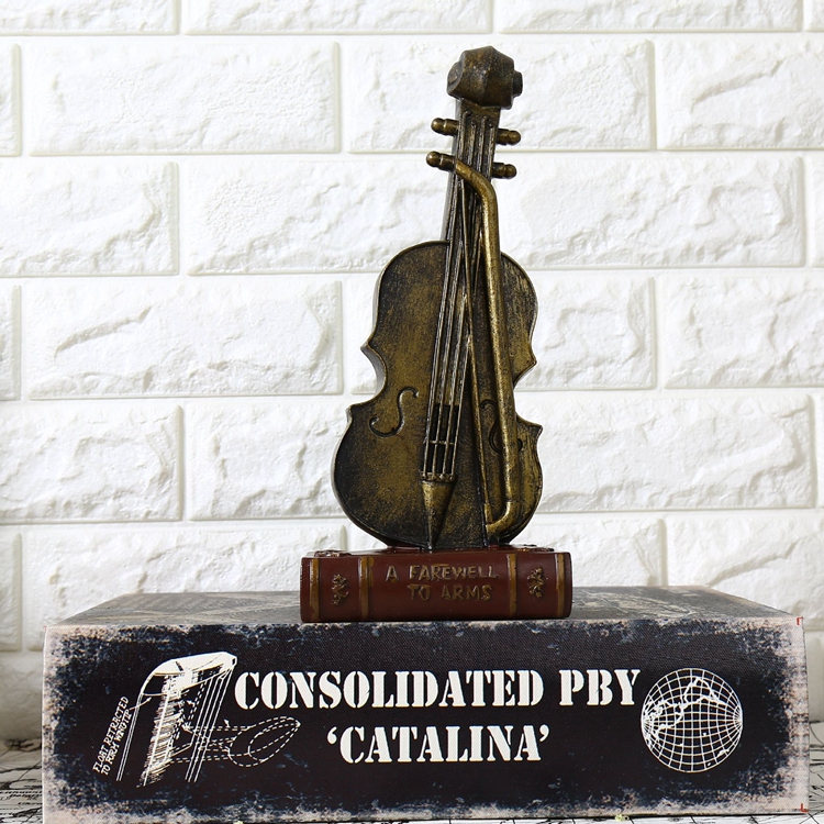 A26-YX-018A-金色歐式復古樂器做舊咖啡廳酒吧家居飾品客廳臥室電視機柜裝飾擺件
