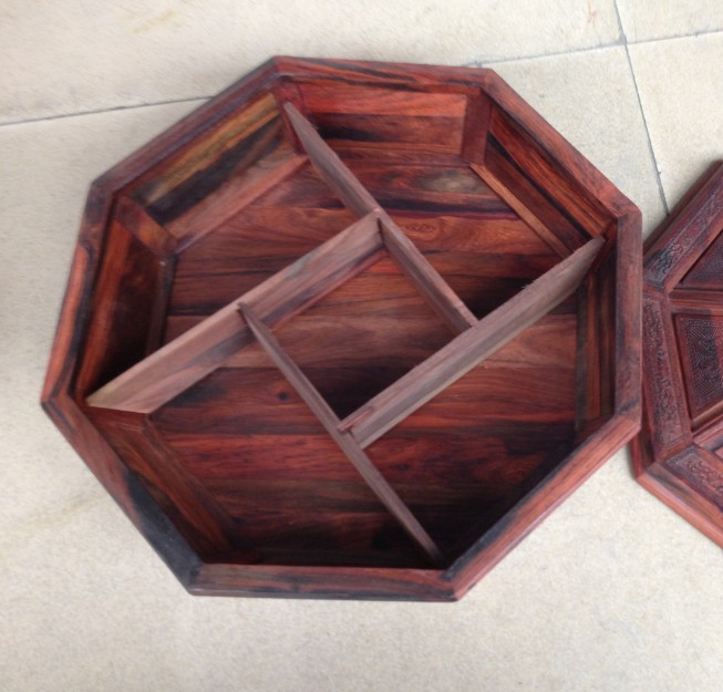 5格款老撾大紅酸枝果盤交趾黃檀九格糖果盒紅木果盒工藝品木雕擺件