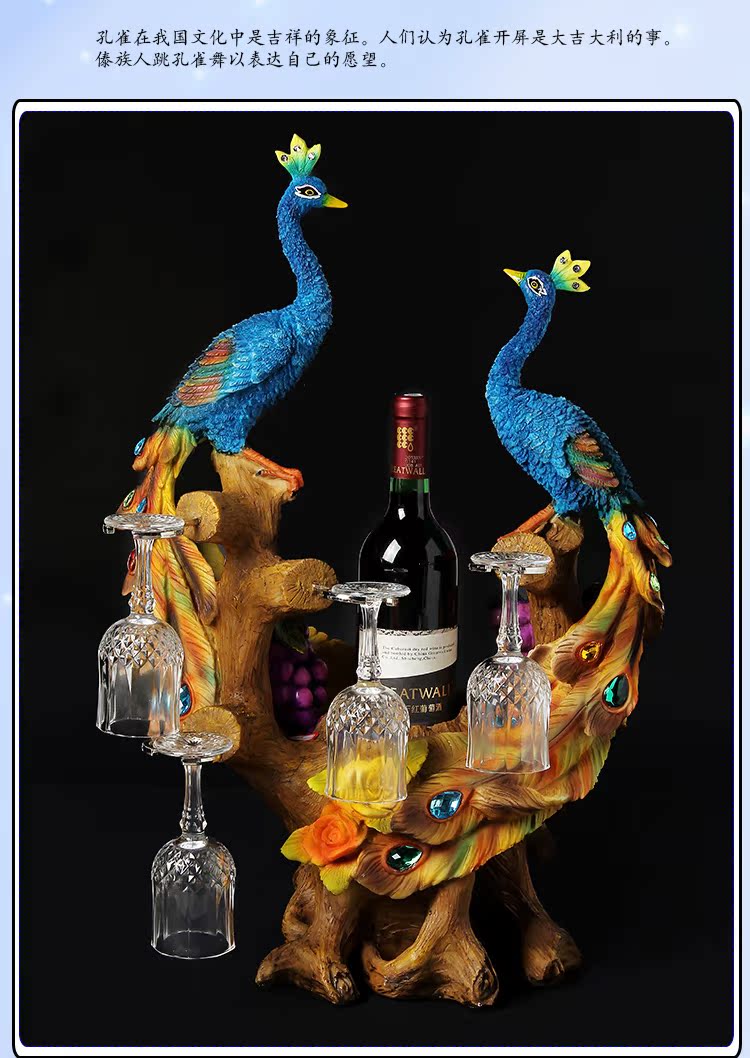 551送兩個酒杯孔雀酒架擺件客廳酒柜裝飾品喬遷婚慶禮品創意結婚禮物喬遷禮品