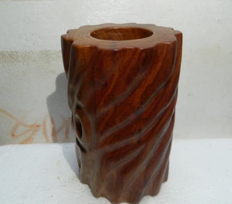 1號筆筒擺件紅木草花梨木筆筒整木挖 紋理漂亮個性禮品擺件
