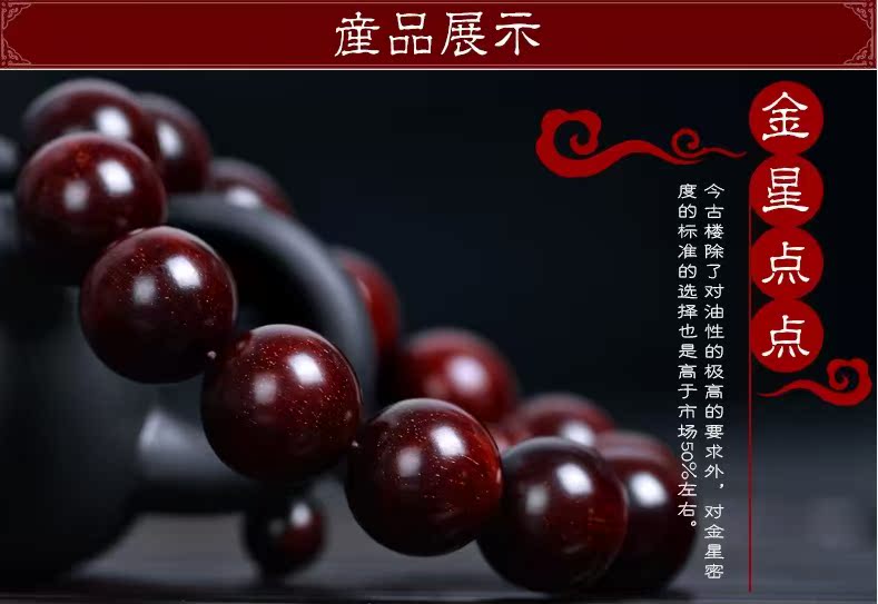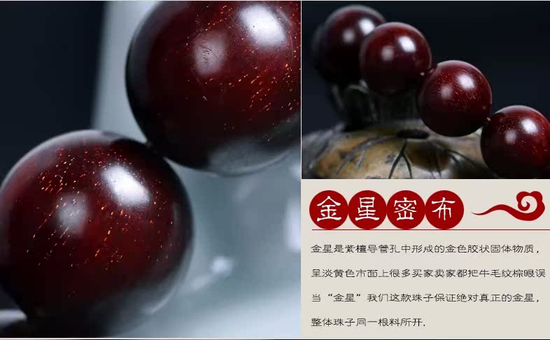 | 本公司大部分商品6一10天到貨。不接急單。急單的客戶請不要下單。感謝諒解與合作! 技術支持:工具吧_網店助理 此款商品為正宗印度小葉紫檀,精品無裂本店承諾,【品名】:小葉紫檀佛珠手串 【【推薦理由】:布金星,密度大,絕對是好紫檀才有的重量!金星同料正圓、順紋、金星、老料取材,是精心挑選出來的!整條佛珠顏色極順,原汁原味!真正好的料子是可以直面裸露的!保證正品,終身無理由退換!