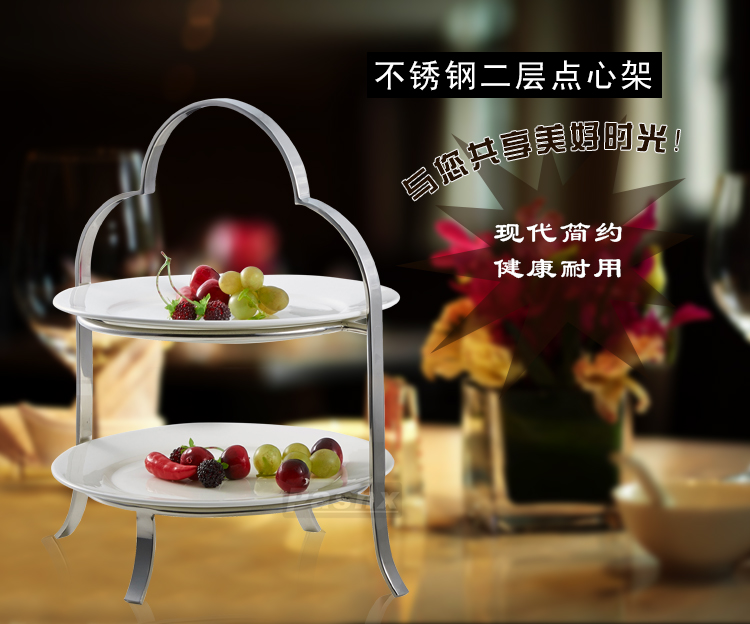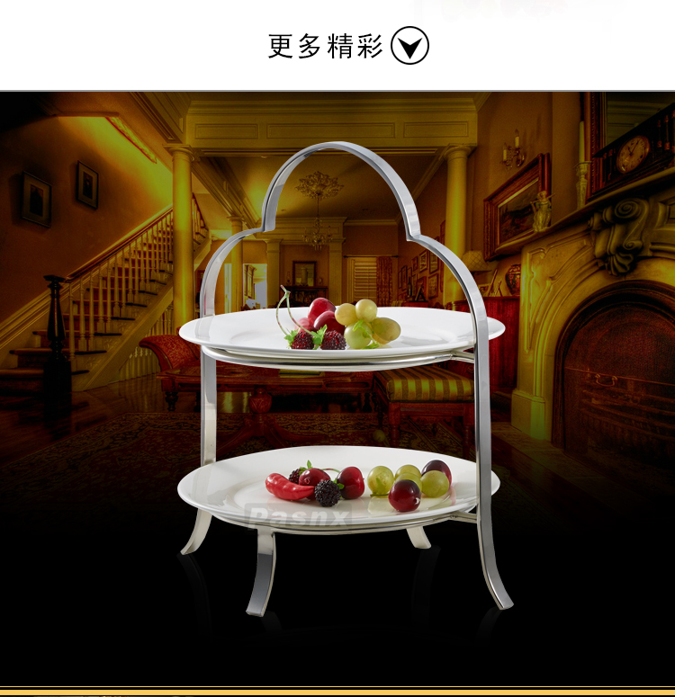 銀邊盆+架子新款不銹鋼多層下午茶點心架糕點架自助餐冷餐架食物展示架面包架