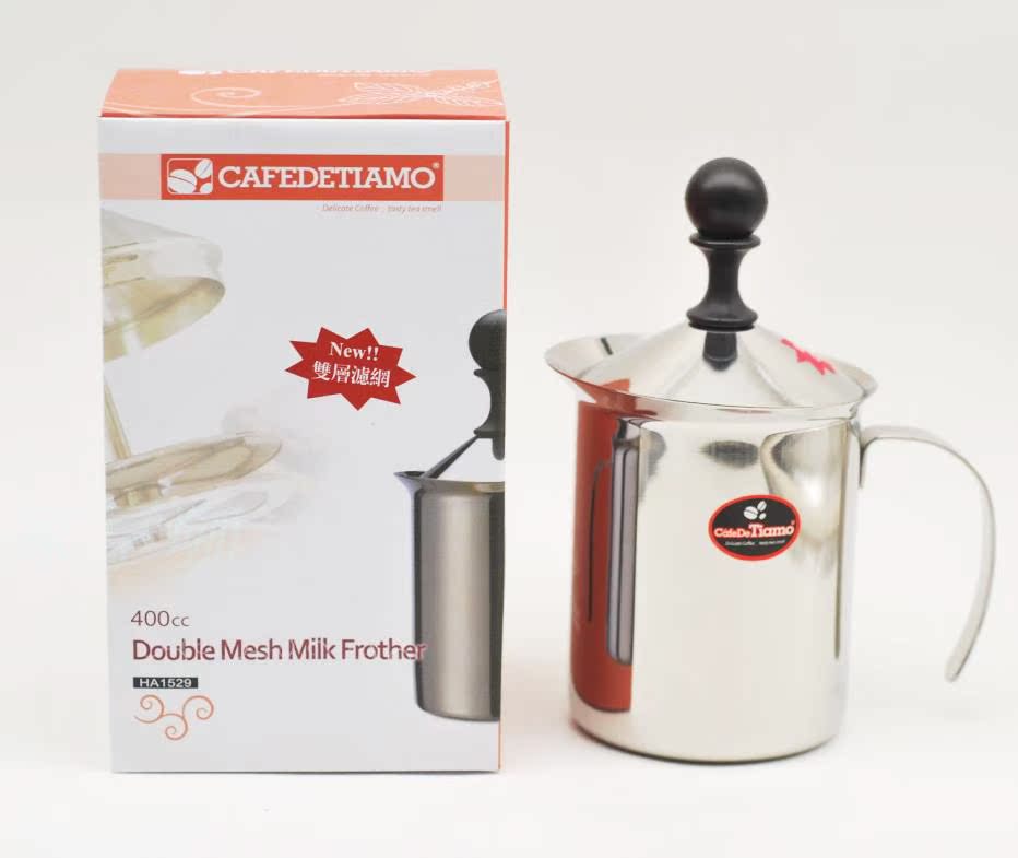 銀色TiamoHA1529不銹鋼雙層網打奶器花式咖啡雙層手動牛奶發泡器400ml