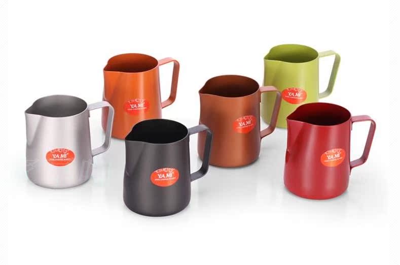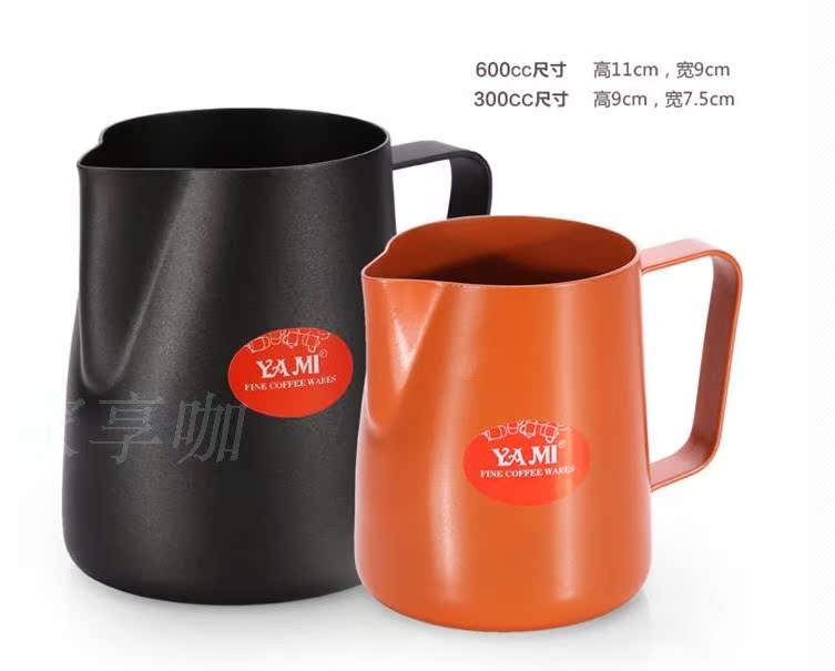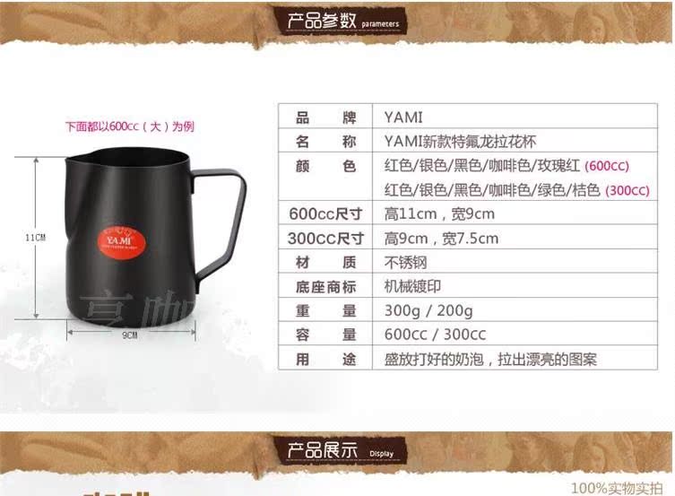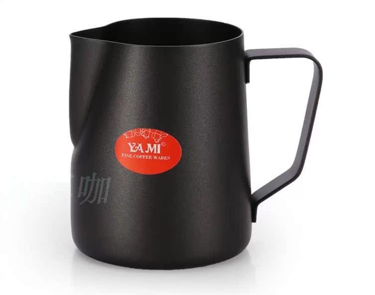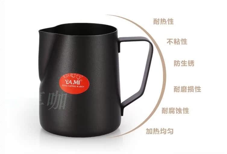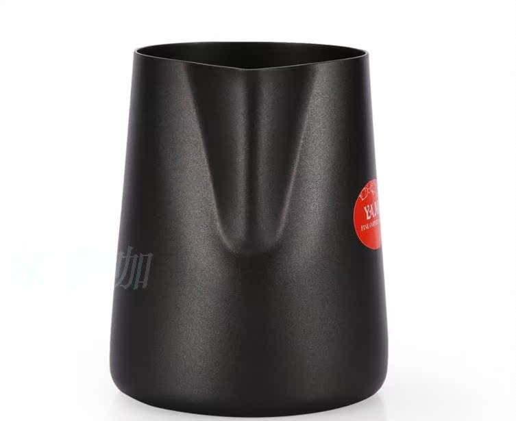 黑加厚特氟龍不銹鋼拉花缸 尖嘴不沾奶拉花杯奶泡杯600ml