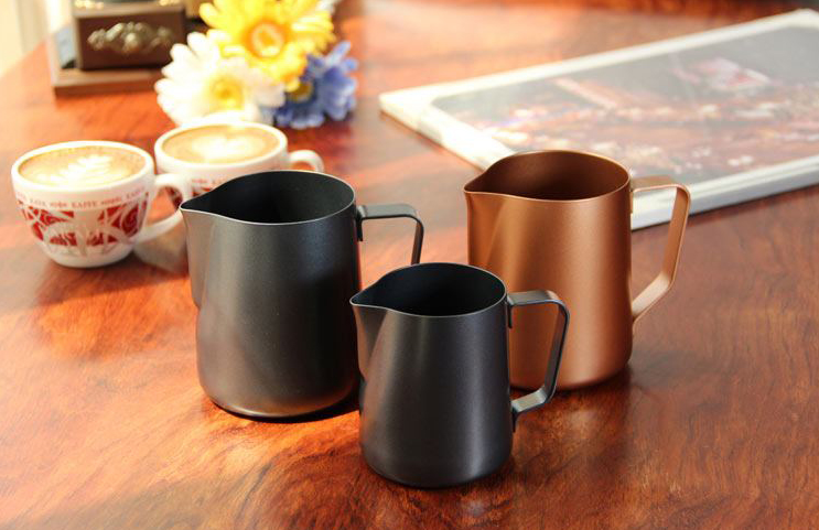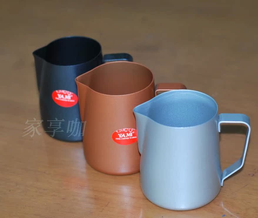 黑YAMI 不粘涂層拉花杯 特氟龍拉花缸 奶泡缸 磨砂拉花杯600cc