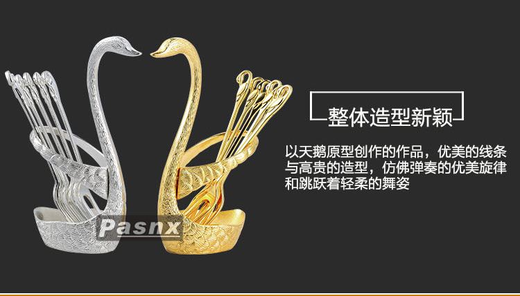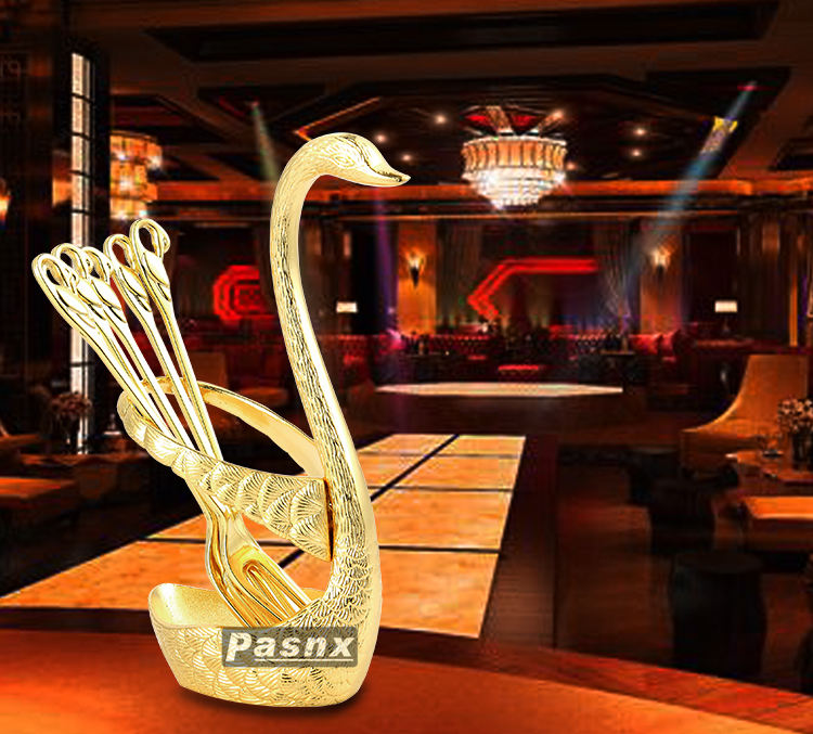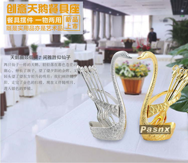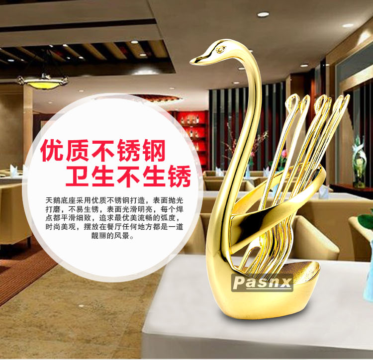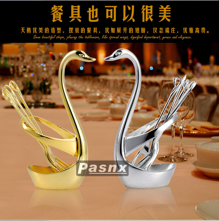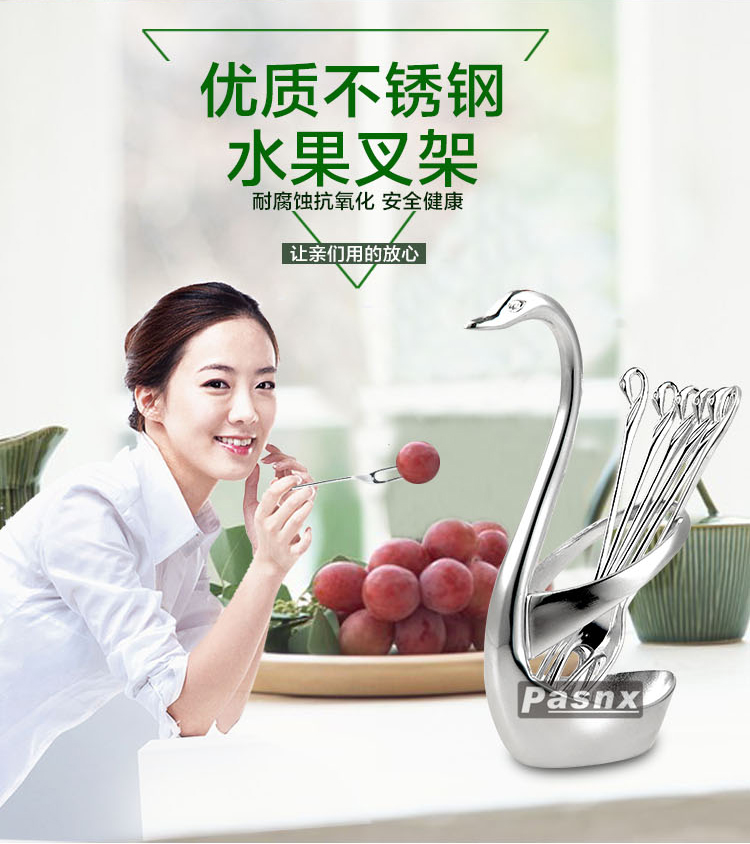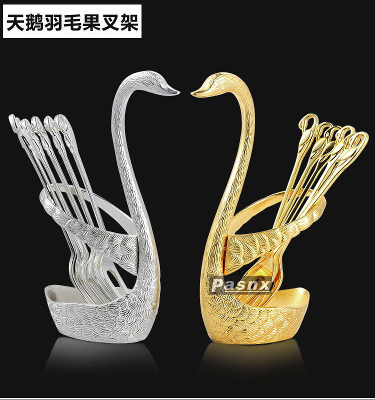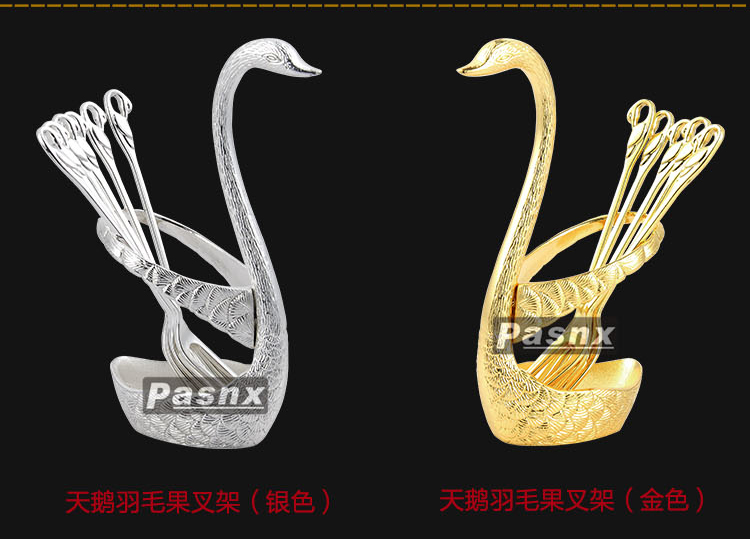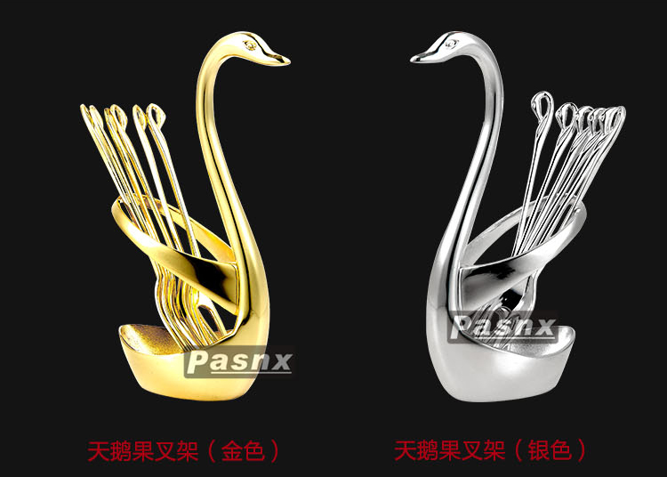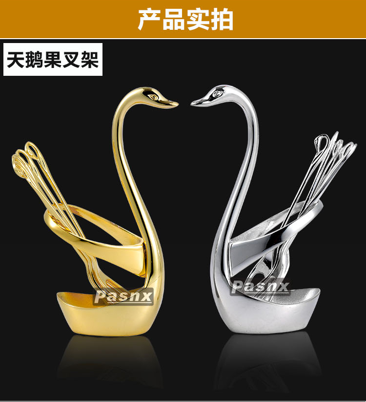 黃色水果叉水果簽創意天鵝果叉金色銀色天鵝座套裝蛋糕叉點心叉