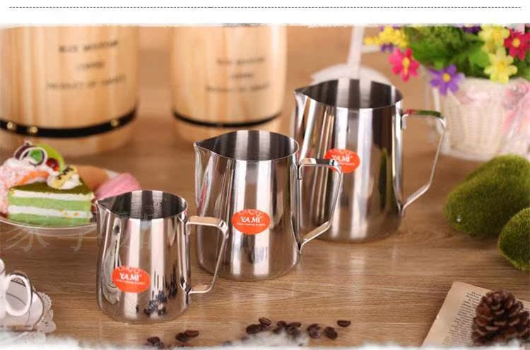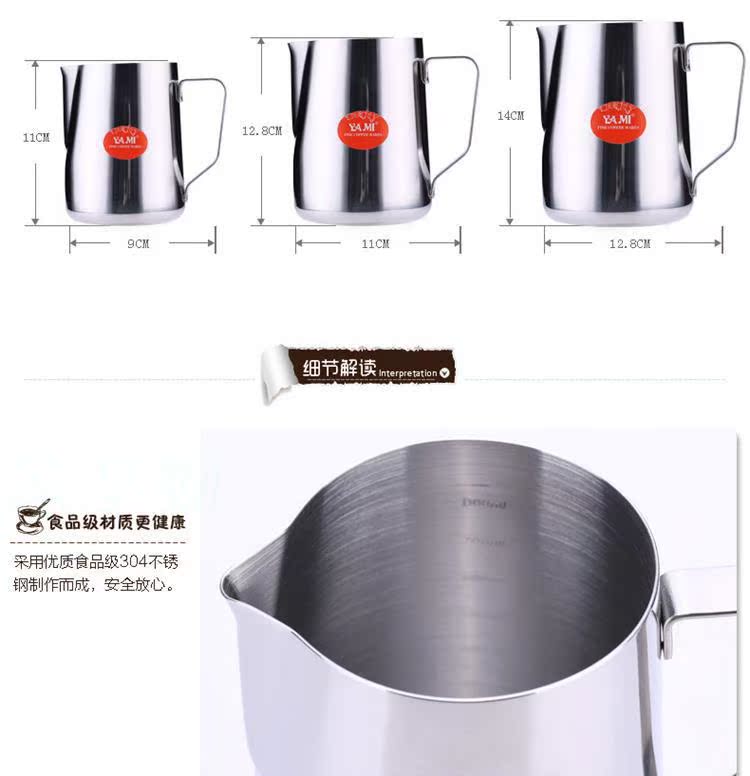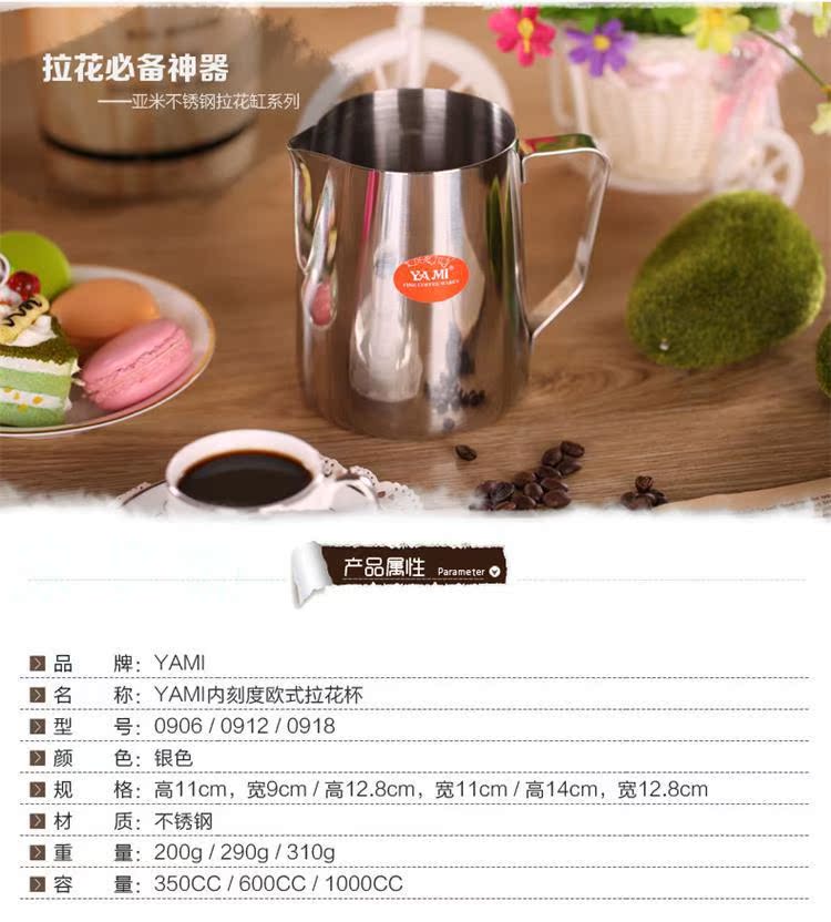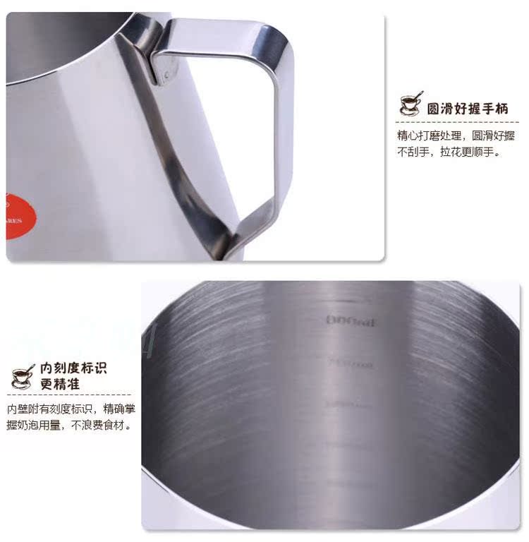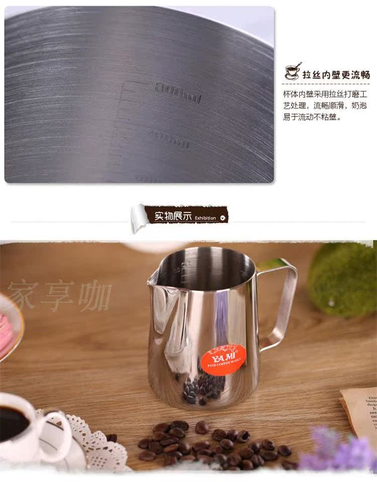 黃色內刻度拉花杯 不銹鋼咖啡拉花缸 帶刻度打奶缸350cc 1000