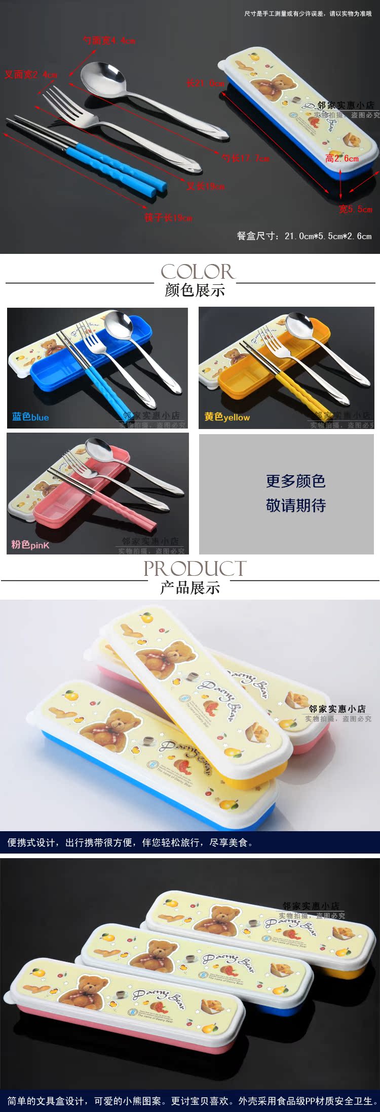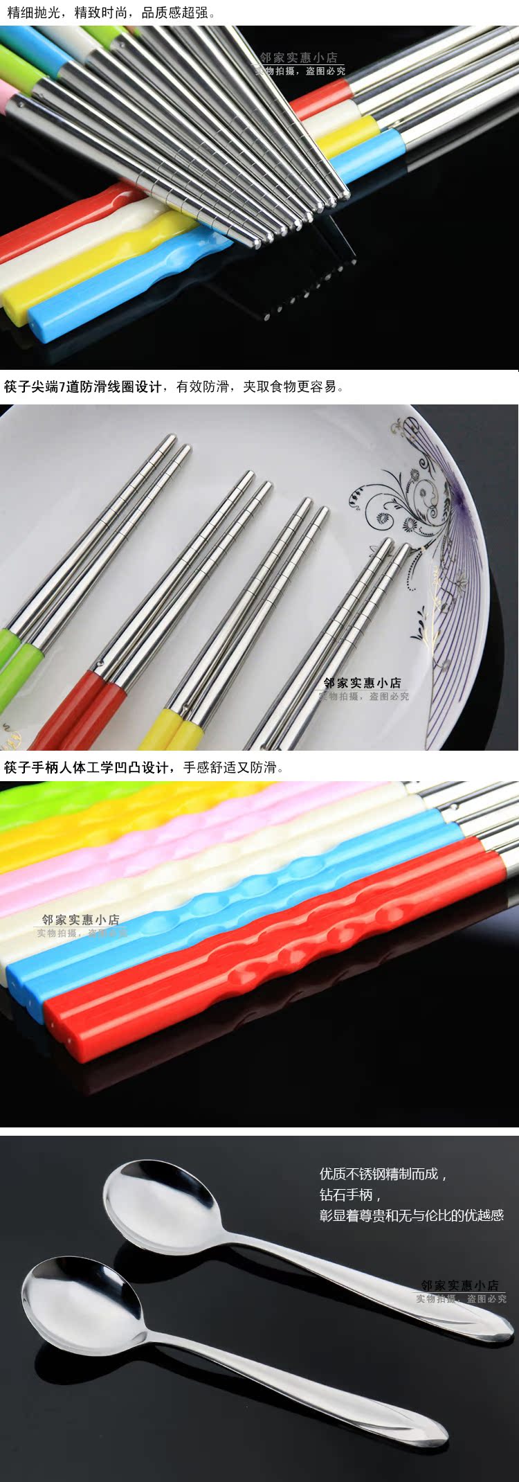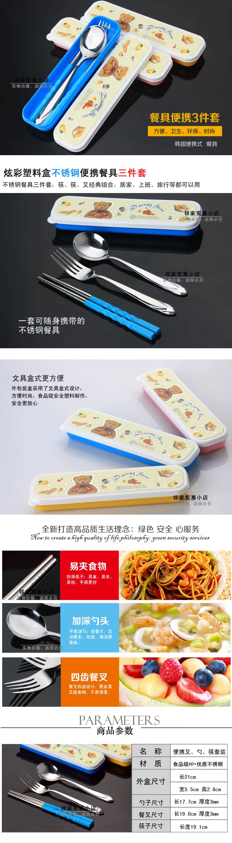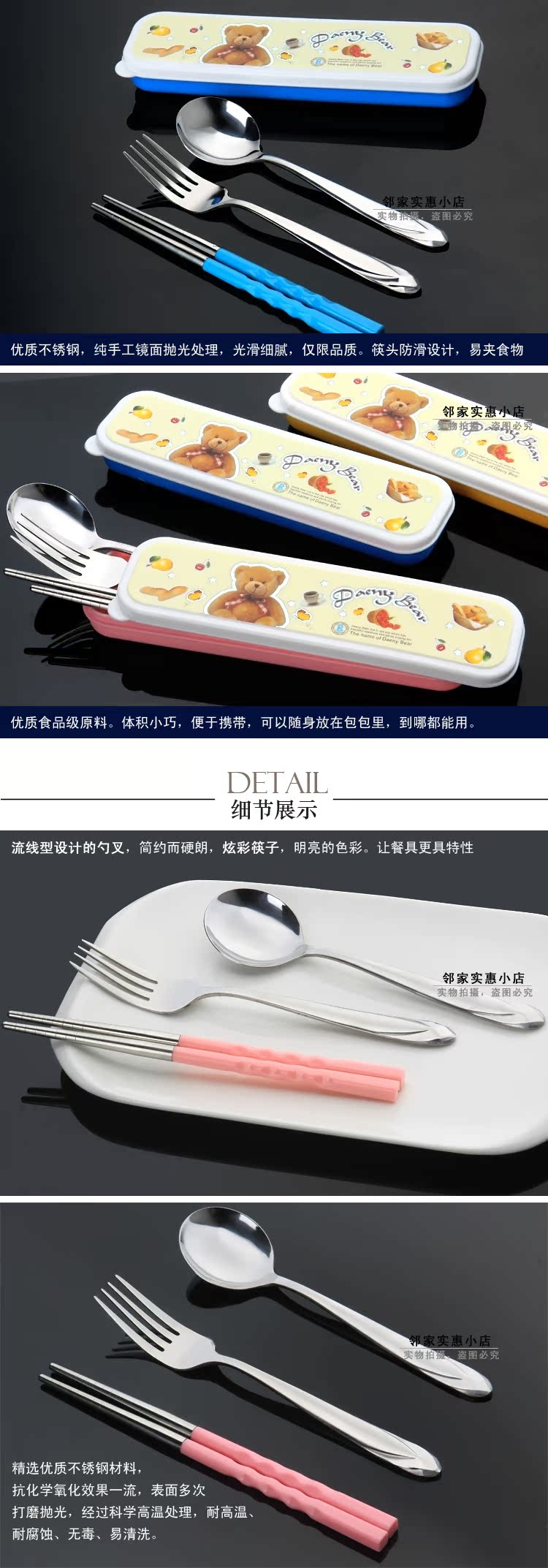 旅行便攜式餐具套裝 尖頭鉆石柄不銹鋼勺筷叉三件套 筷子叉餐勺 兒童餐具