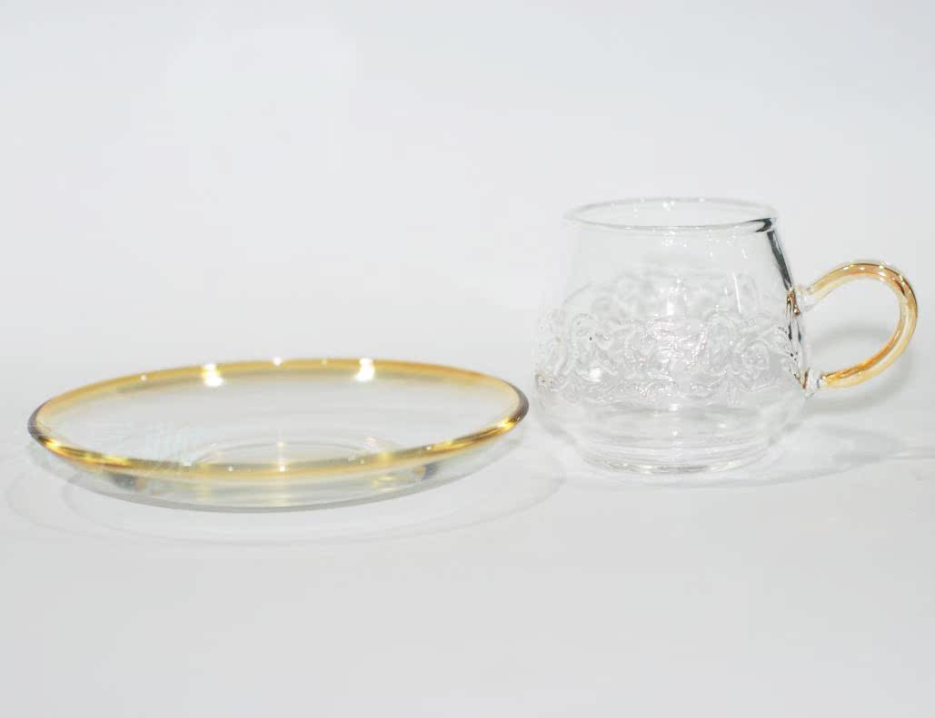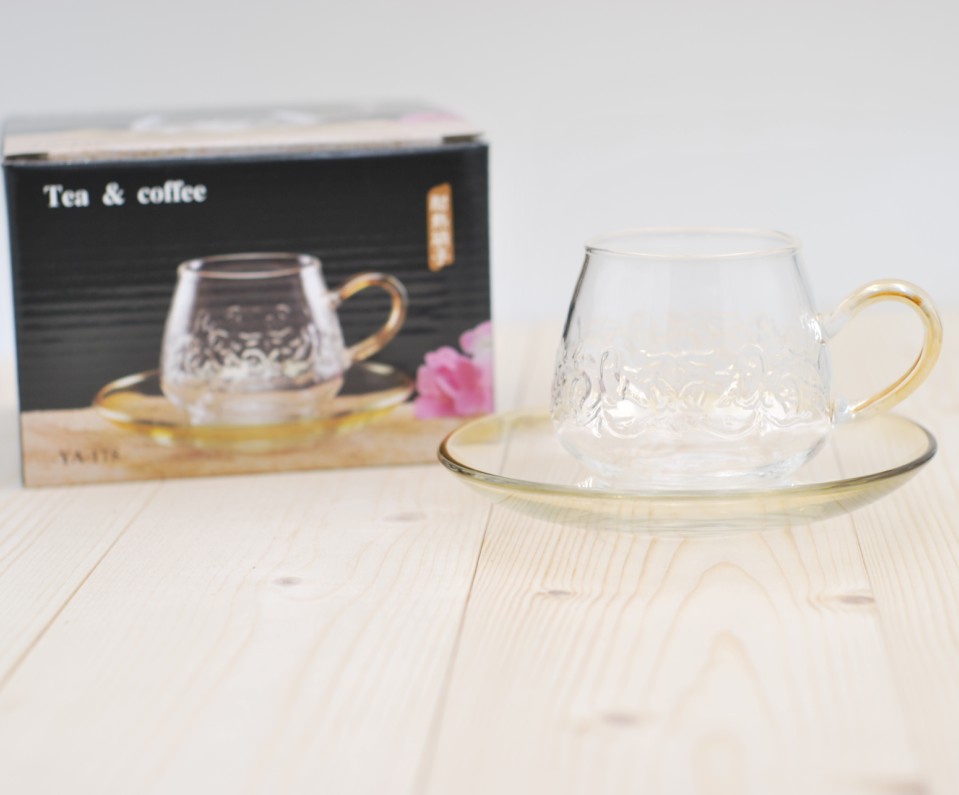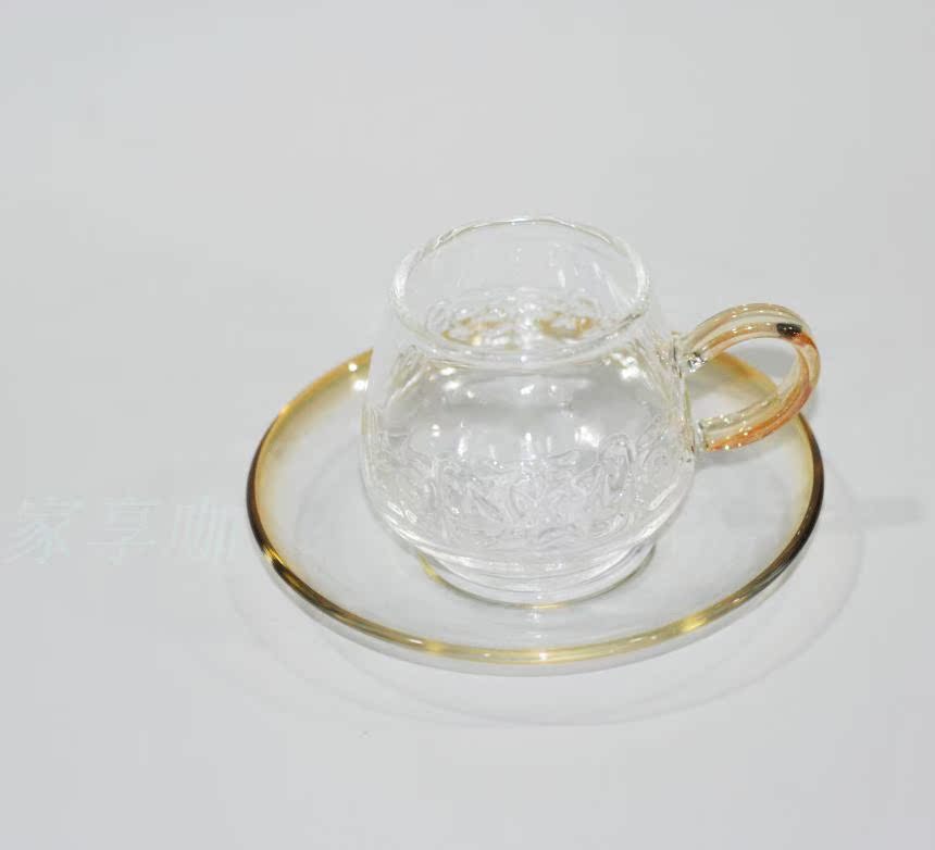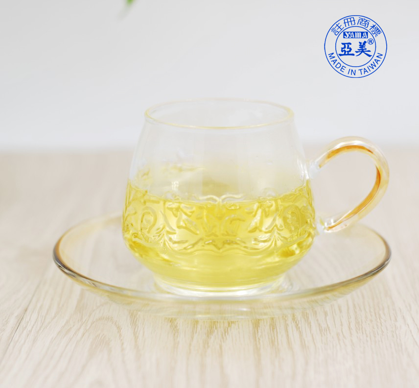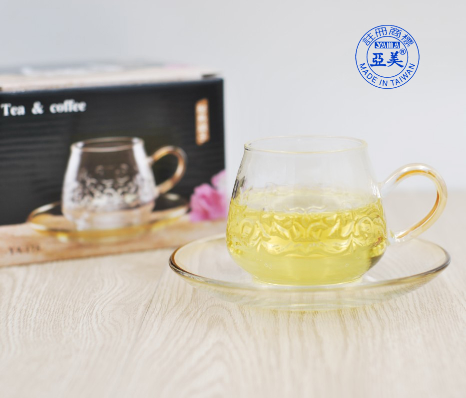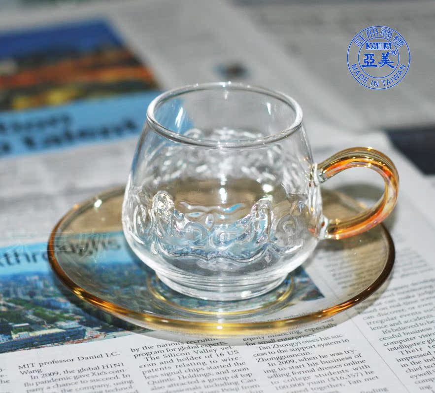 透明原裝YAMA亞美精美耐熱玻璃花草茶杯玻璃小茶杯配碟160ml