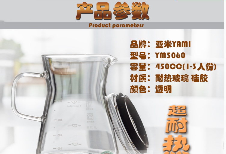 透明耐熱玻璃壺/咖啡壺/手沖分享壺/微波可用/450毫升