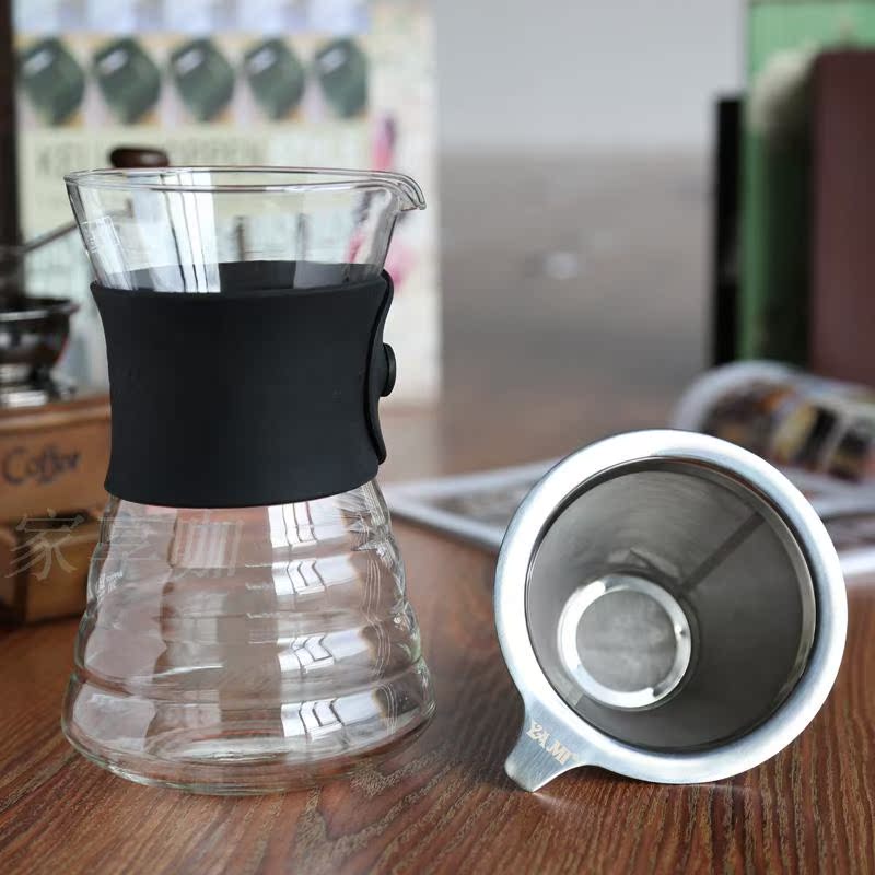透明不銹鋼濾網滴漏咖啡壺 手沖咖啡一體壺免濾紙 家用咖啡壺