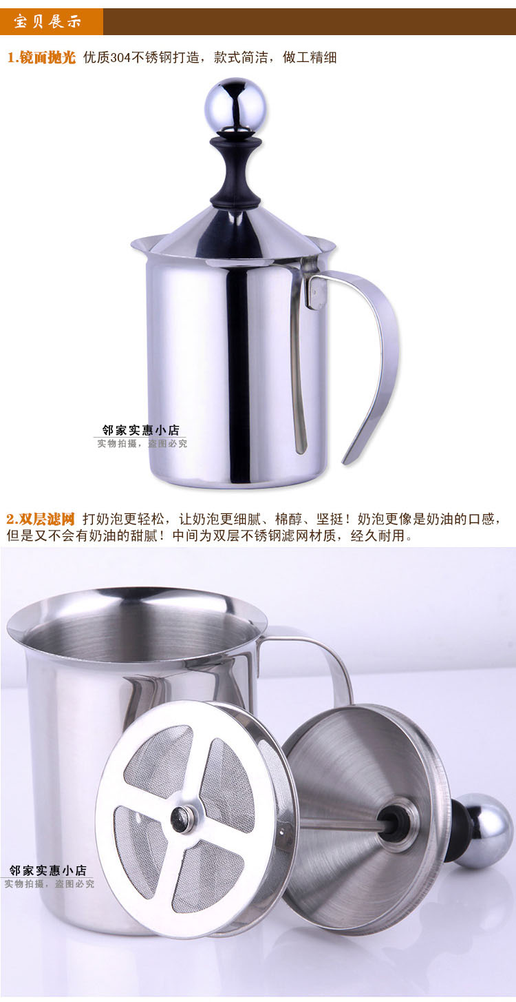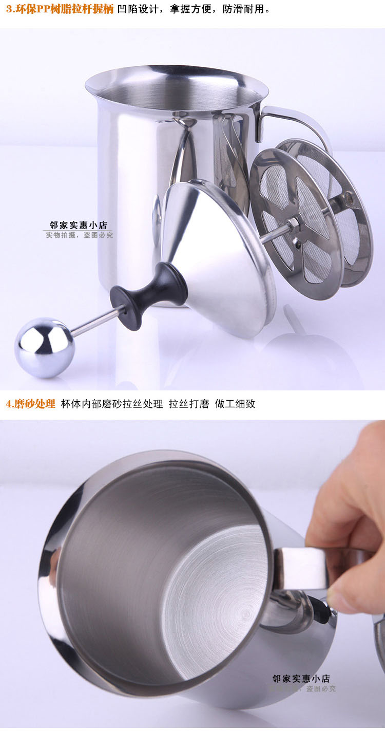 304不銹鋼雙層打奶泡器 手動打奶器 牛奶打泡器 咖啡打奶機 400ml