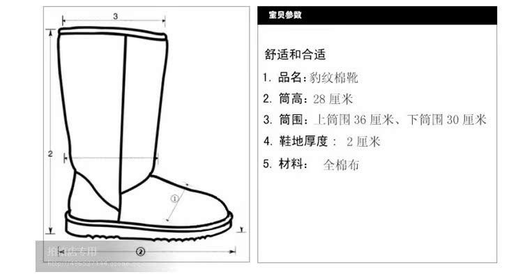 | 本公司大部分商品6一10天到貨。不接急單。急單的客戶請不要下單。感謝諒解與合作! 價格:7.8 豹紋款超級保暖長筒棉靴 采用優質防滑底 羊羔絨加厚棉靴 原價25,現在超級虧本價9.9 親,你真的賺到了! 由于本店主營改高檔不銹鋼餐具廚具系列,其他分類商品全部進價或虧本賣了!有喜歡的,抓緊來淘,賣完就沒了。質量保證! 真正虧本價!不參加店內活動!