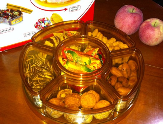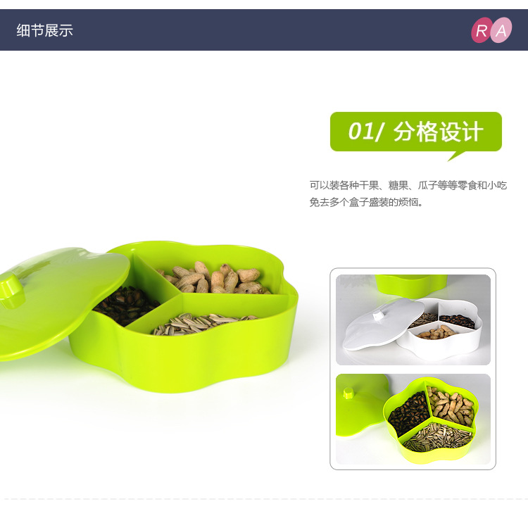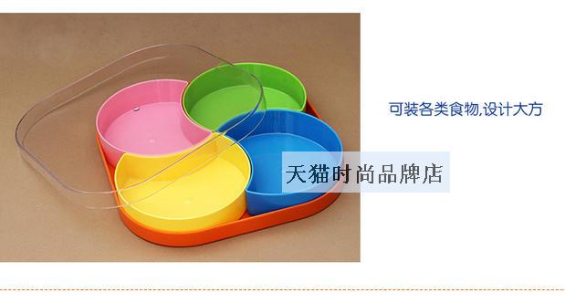 青花果盤創意時尚轉動密封帶蓋分格塑料糖果盒歐式干果盤瓜果盤干果盒