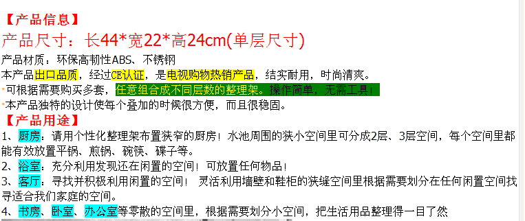 長43寬22高32超贊廚房浴室多用(單層)整理架層架微波爐置物架可疊放加層