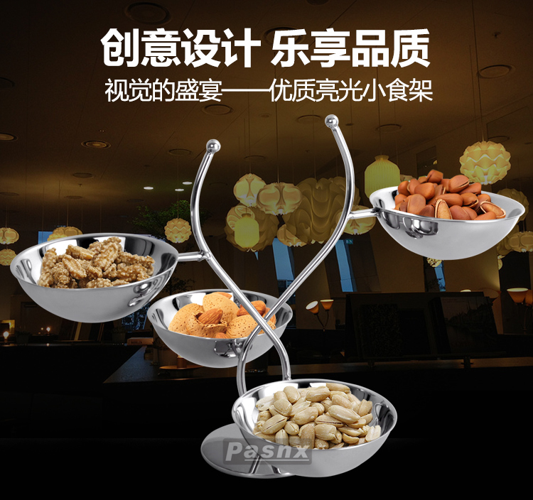 金色8.5cm碗不銹鋼精致藝術四星果碟 多格小食架小吃碟零食碗酒吧KTV小水果盤