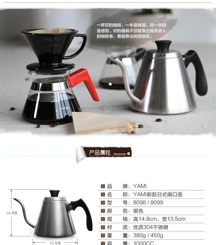 亞光新品亞米YAMI日式手沖咖啡細口壺 手沖咖啡達人壺 不銹鋼咖啡壺