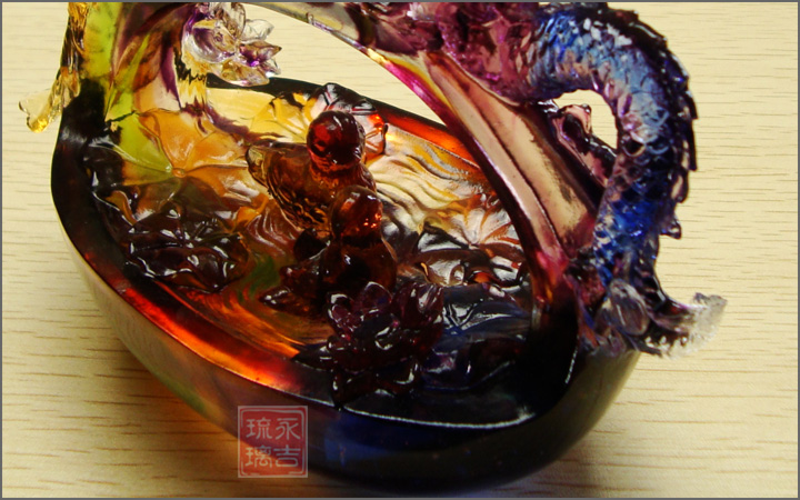 送閨蜜朋友高檔創意百年好合擺件結婚禮品琉璃工藝品龍鳳鴛鴦擺設