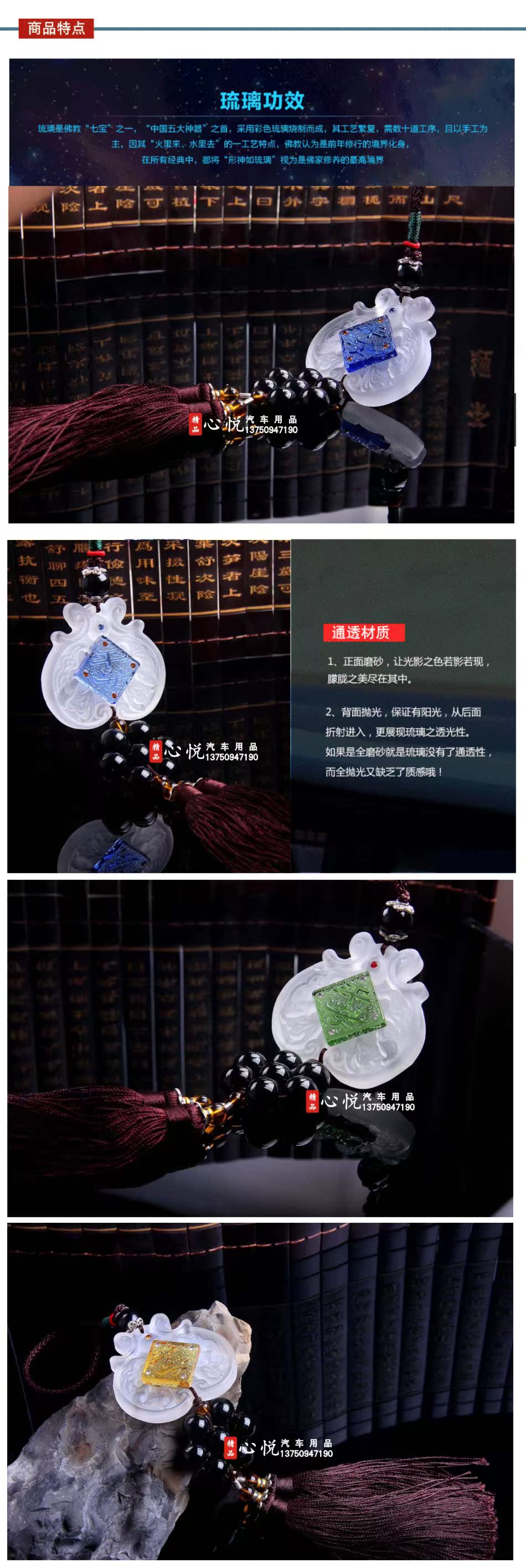 藍色桃形汽車掛件 保平安高檔精致琉璃掛件【全國】時尚汽車用品