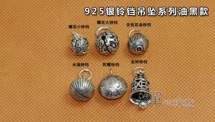 【品名】DIY佛珠配件 925銀油黑款帶環鈴鐺系列吊墜 散珠 批發 【材質】925銀 【規格】雕花大鈴鐺15*12MM 35/顆 重量:3.5g 雕花小鈴鐺12.5*10MM 26/顆 重量:2.6g 含苞花朵鈴鐺14*10MM 28/顆 重量:2.8g 水滴鈴鐺17*12MM 33/顆 重量:3.3g 陀螺鈴鐺19*14MM 24/顆 重量:2.4g 金鐘鈴鐺18*12MM 30/顆 重量:3g 陀螺小圓鈴鐺8*12MM 15.8/顆 重量:1.52g 適合手串手鏈DIY制作。手工打磨會有一點點尺寸和重量的誤差,敬請諒解。