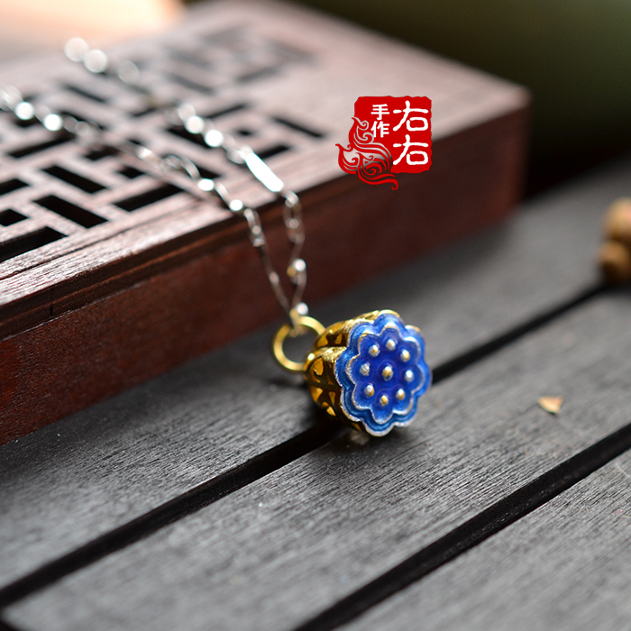特別喜歡這款的造型,用的是白銅做底,景泰藍工藝,小小的掛在鎖骨間很漂亮的啦