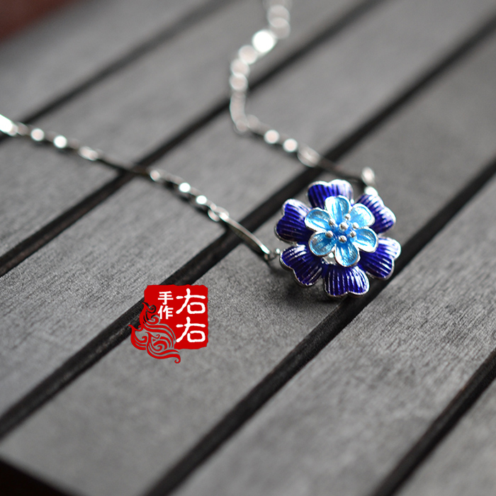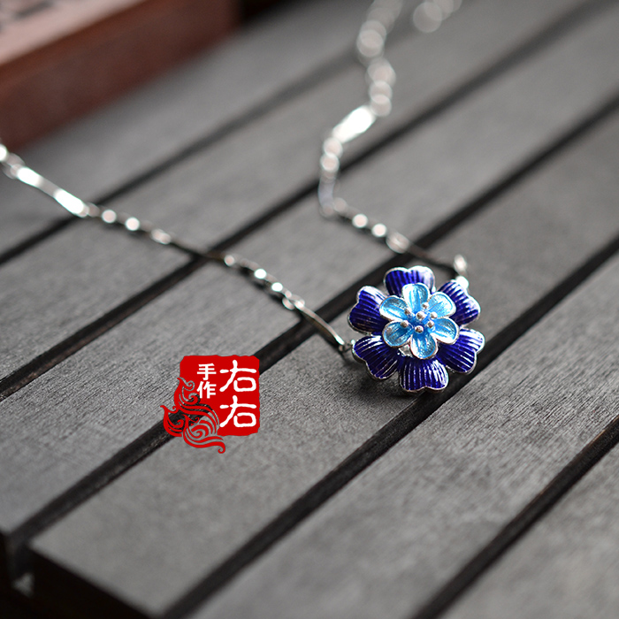 特別喜歡這款的造型,用的是白銅做底,景泰藍工藝,小小的掛在鎖骨間很漂亮的啦