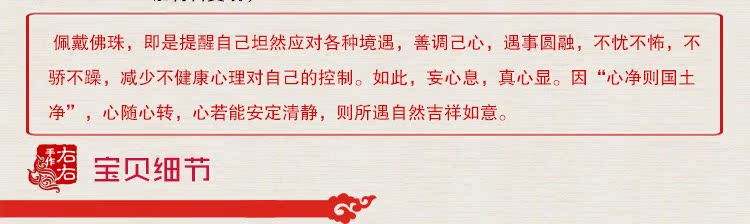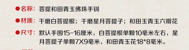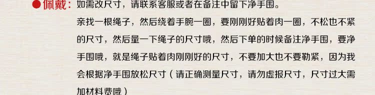 | 本公司大部分商品6一10天到貨。不接急單。急單的客戶請不要下單。感謝諒解與合作! 注意:介意珠子顆數的請注意,天然菩提子手工打磨,因為批次不同,單顆的尺寸會上下浮動,新一批的白菩提單顆尺寸約11-12毫米,所以成品手鏈為了手圍尺寸修改為17顆,外加一顆備用珠。價值是一樣的。如果一定要求穿成18顆下單時說明,我們會穿成18顆,戴了大了請自行拆珠修改。小店調整手鏈珠子顆珠原意只為批次珠子尺寸不同進行手圍調整而已,介意的提前說明,或看完描述頁。 鄭重申明:這款白色的珠子用的是干磨白菩提根,我歡迎大家用正確的方式鑒定,不要單憑感覺就亂評價,我自己很喜歡白菩提根,但卻猶豫了這么久才推出幾款,就是怕遇到不懂貨又要亂評價的人,白菩提根懂的人都知道是什么樣的手感,什么樣的氣味,怎么盤玩,但是不懂的人,動不動就會說好像塑料,好像假的,我們對進貨渠道很嚴格,一定會從正規廠家拿貨,也希望親不懂的可以找懂的人鑒定,再或者可以網上搜鑒定方式,不要隨意的猜想就否定我們所有的用心。 最簡單的鑒定方式:打火機燒一下十幾秒,融化了就是假的,發黃有燒焦的痕跡但沒融化就是真的。 促銷:現在購買限量送麻布小束口袋一個,送完為止,先到先得