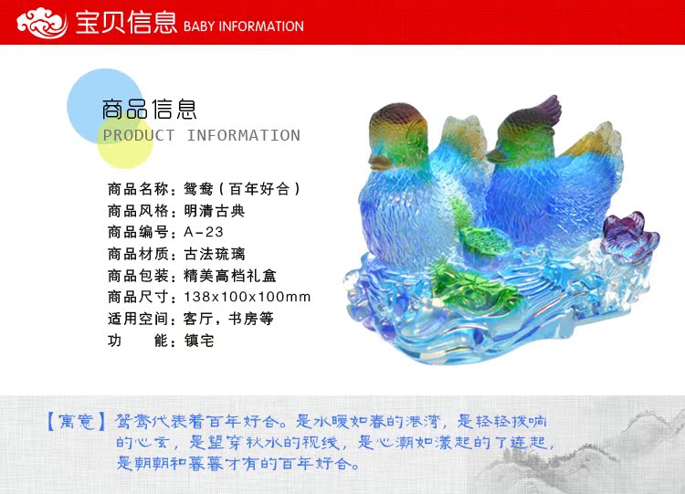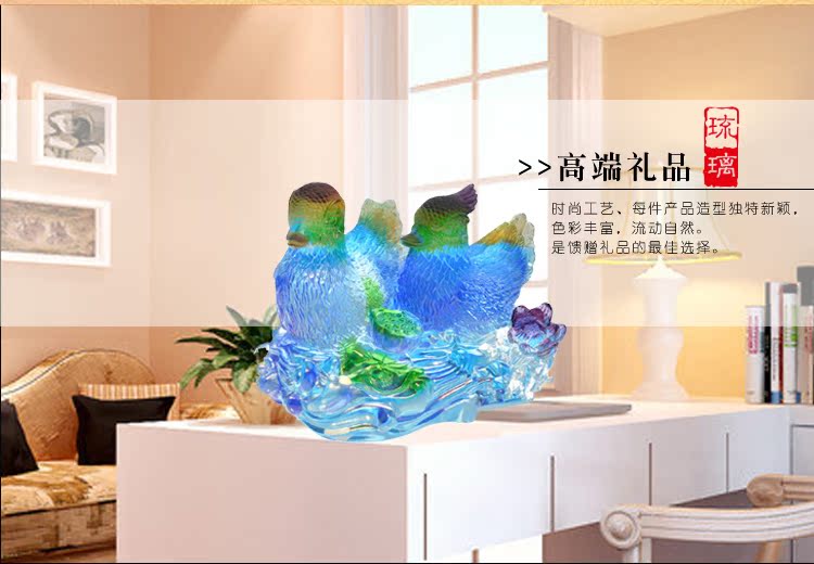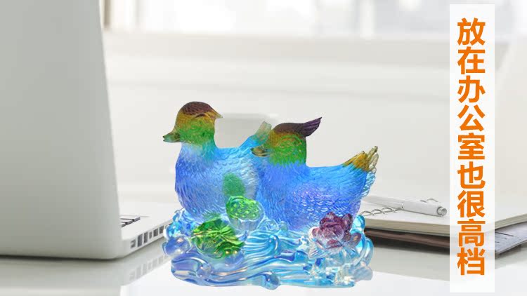 新品琉璃鴛鴦擺件工藝品百年好合結婚禮物琉璃高檔客廳生日禮品