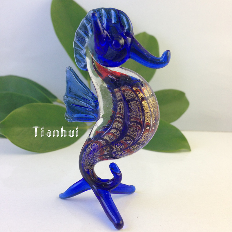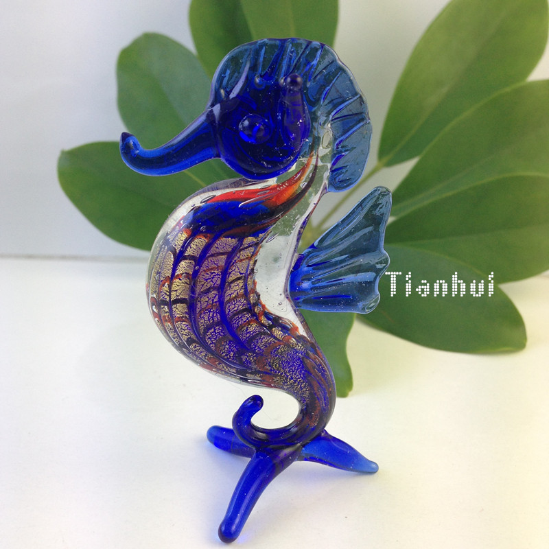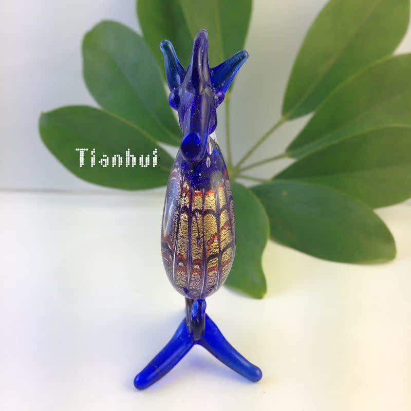 單只價格水晶玻璃工藝品-琉璃擺件-金箔小海馬-家居飾品手工制作魚缸裝飾