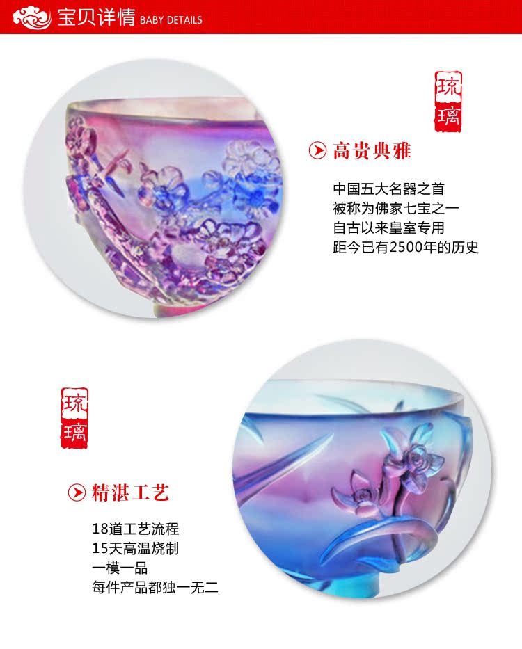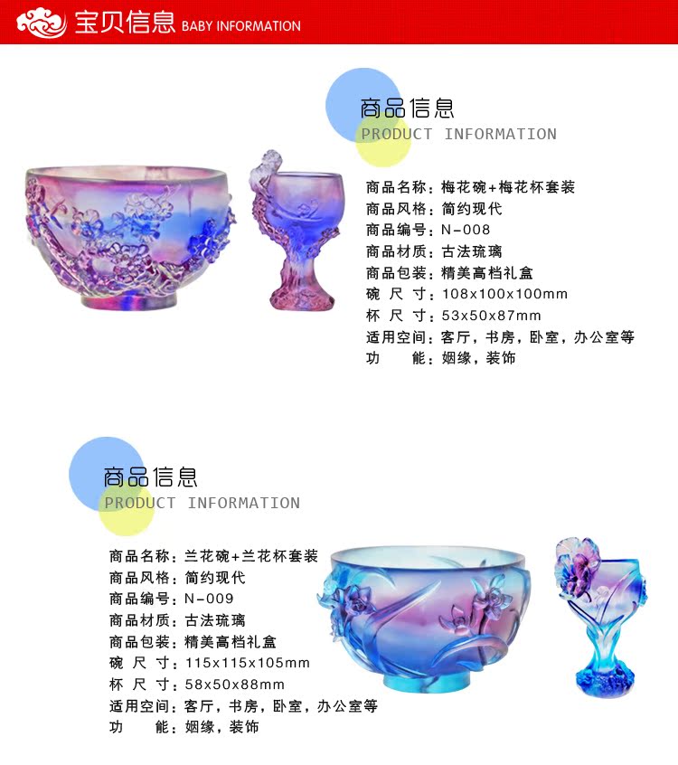 梅花碗+杯子套裝梅蘭竹菊琉璃碗杯子套裝擺件生日結婚禮物家居客廳酒柜高檔禮品