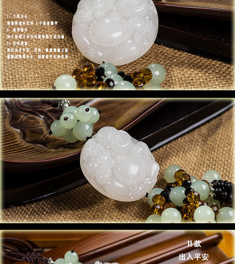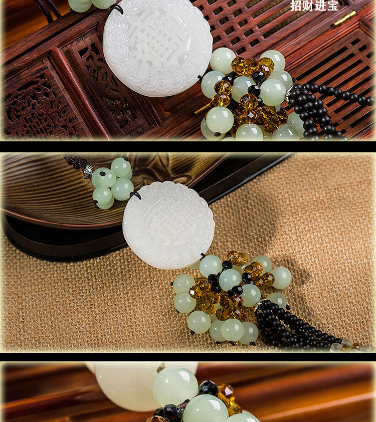 純天然白玉招財進寶汽車掛件車內掛飾品出入平安高檔汽車用