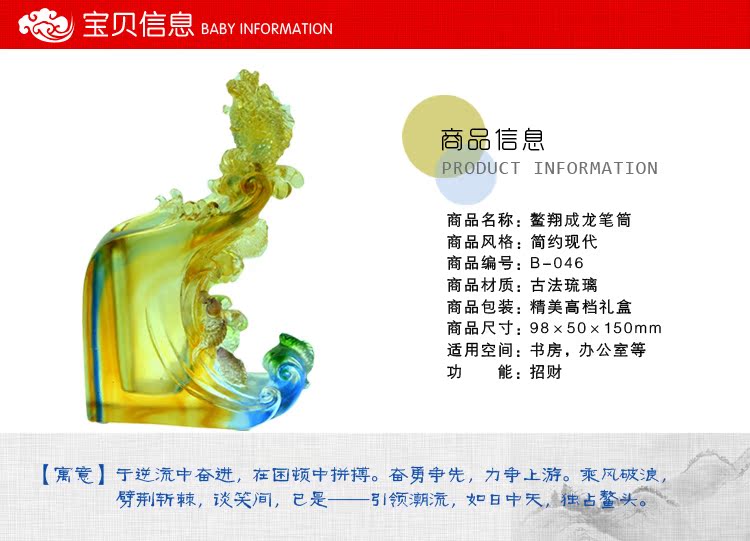 琉璃辦公桌書房筆筒擺件 創意家居實用工藝禮品 獨占鰲頭商務禮物