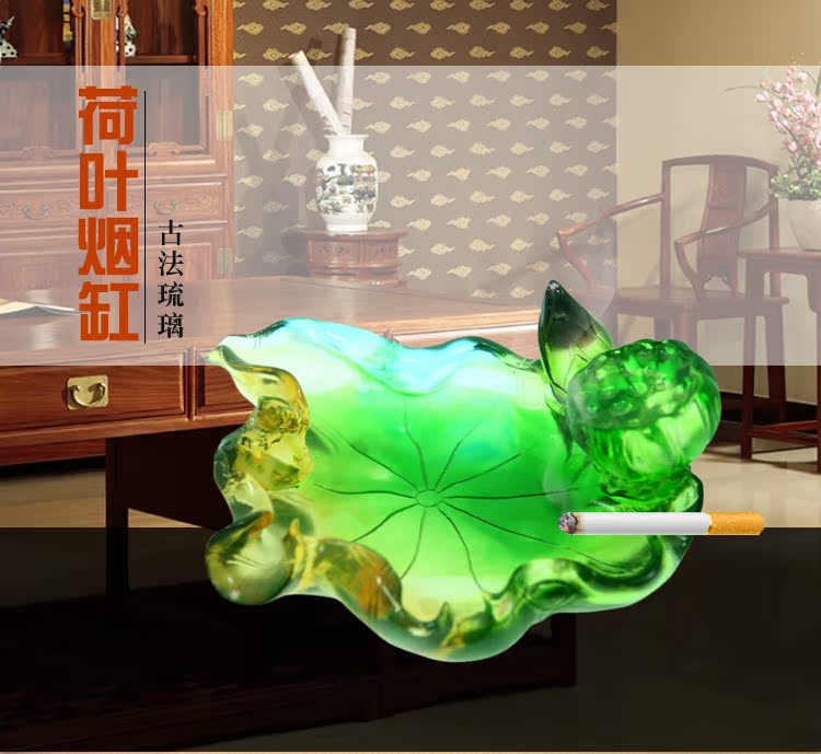 琉璃煙灰缸擺件荷花煙缸辦公桌高檔禮品和和美美結婚首飾裝飾品